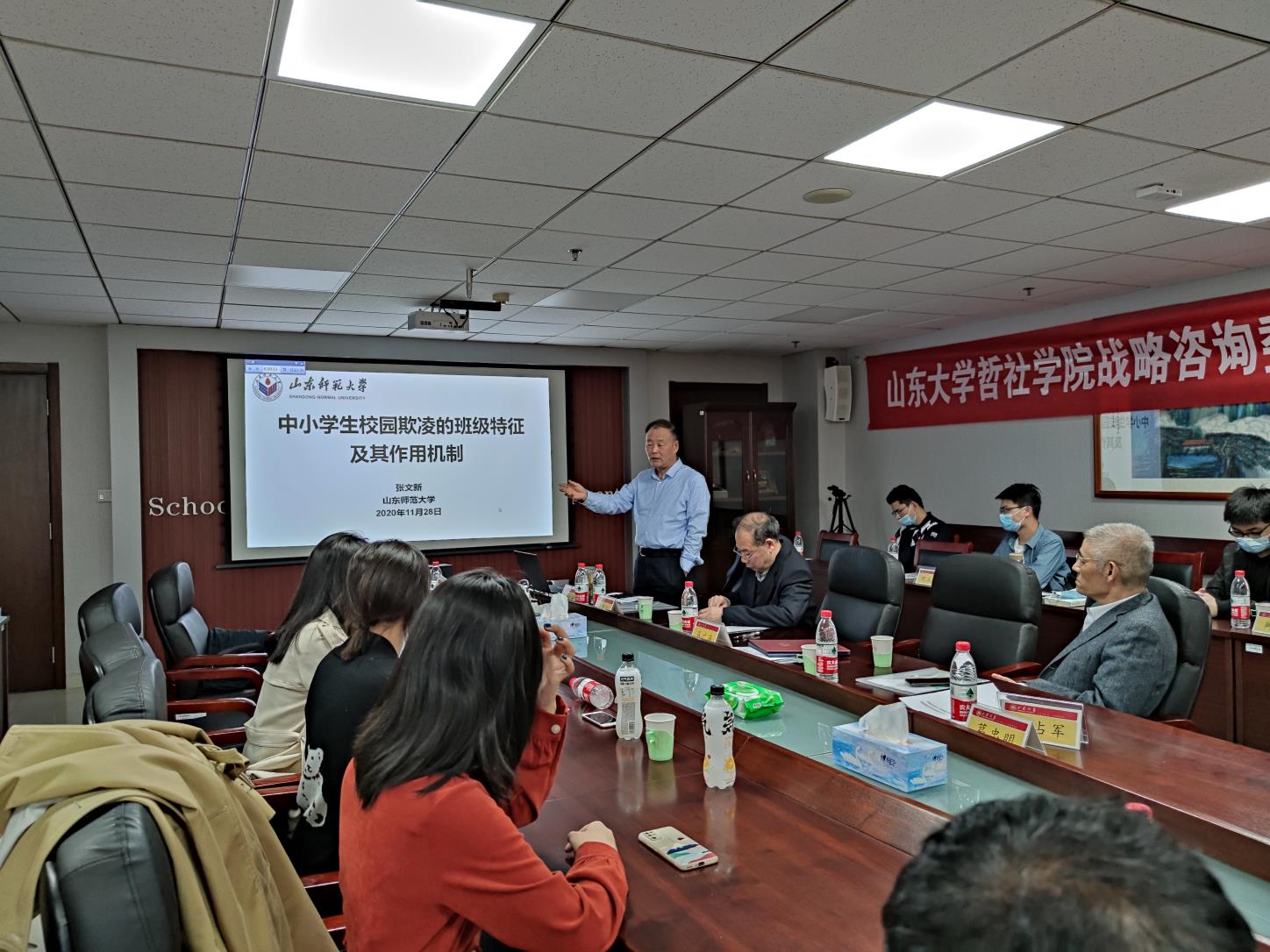 4月9日下午,山东师范大学张文新教授于知新楼A1618作题为“校园欺凌的班级特征及其作用机制”的学术报告。报告由beat365英国官方网站社会学系林聚任教授主持。