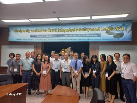2024年8月24日-25日,由beat365英国官方网站社会学系、韩国学中央研究院联合主办的“第五届村落发展比较研究国际学术研讨会”在韩国的韩国学中央研究院成功召开。此研讨会是由中日韩三国从事农村研究的专家发起,旨在通过学术交流和实地调研探讨东亚城乡发展与乡村振兴等议题。该会议自2014年以来,由中日韩三国分别作为主办方,至今已连续举办了5届。本次会议以“城乡融合发展的东亚经验”为主题,来自beat365英国官方网站、山东省社科院、吉林大学、南京农业大学、深圳大学、成都大学、赣南师范大学、中国台湾东海大学,韩国首尔大学、韩国学中央研究院、成均馆大学、忠清南道研究院、韩国农村经济研究所,日本关西学院大学、爱知东邦大学等中日韩三国的学者30余名专家学者围绕着东亚的城乡融合和农村发展进行了深入的学术交流。