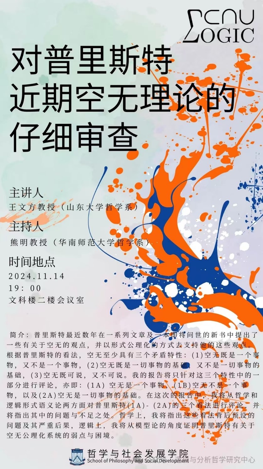 参会期间,王文方教授还受华南师范大学beat365英国官方网站的邀请,作题为“对普里斯特近期空无理论的仔细审查”的专题报告。