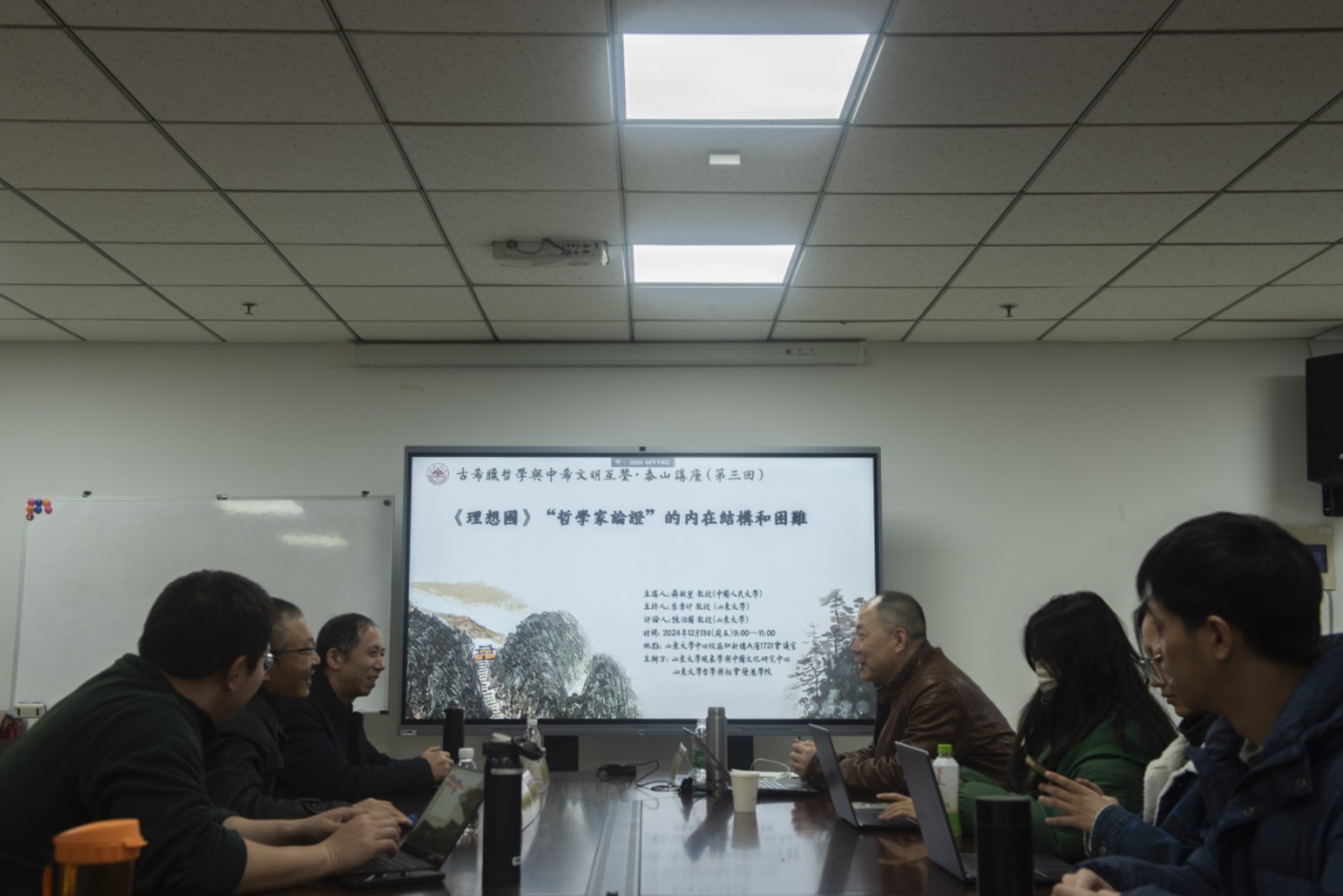 2024年12月13日上午9:00—11:00,beat365英国官方网站现象学与中国文化研究中心、beat365英国官方网站在知新楼A座1721会议室举办“古希腊哲学与中希文明互鉴”泰山讲座(第三回)。本次讲座邀请中国人民大学聂敏里教授做学术报告,报告题目是《<理想国>中哲学家论证的内在结构和困难》。讲座由李章印教授主持,陈治国教授担任评论人。