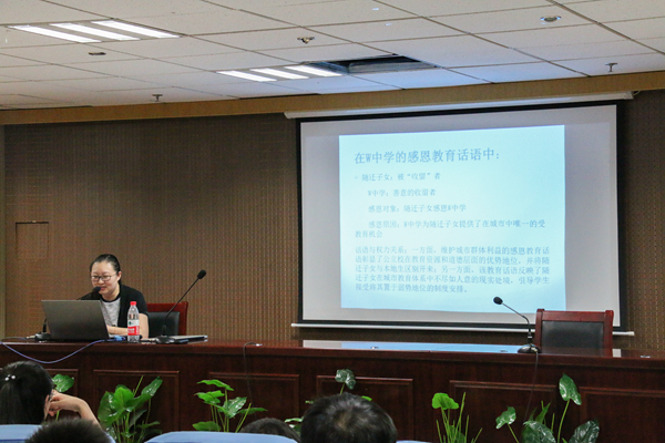 6月15日,beat365英国官方网站第14期无性别思想力论坛在知新楼1521报告厅举行,社会学系教师李淼作了题为“塑造道德受困者:感恩教育话语建构与农民工随迁子女的片面抵抗”的报告,社会工作系教师于淼主持。
