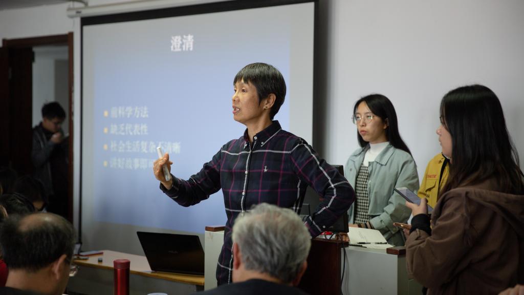 张静教授从语文和论文在语言组织上的差别讲起,她认为,语文可以只讲故事,但研究还必须有论证分析,透过故事寻找背后的原理,完成从“故事”到“知识”的转变。为进一步说明这个观点,她澄清了学术界对案例分析的几个认识误区。首先,案例研究在原则的层面也遵循时空、历史等逻辑,因而它并非是前科学方法。其次,案例分析并非不注重代表性,案例的选择、故事背后普遍性问题的挖掘就是代表性的体现。再次,要区分生活世界和分析世界。最后,案例分析不能认为只要讲好故事即可,要注重普遍性和典型性的挖掘。她还介绍了案例的分类以及知识的概念。案例可以分为新闻型案例和研究型案例,后者是解释现象、发现知识的方式。知识是两个以上要素关系的命题,它揭示一般性原理,具有历史性的逻辑,能够被他人验证,并且能够跟其他的知识相关联。通过与其他知识相关联,我们可以评价自身的研究与以往研究的不同,如果超越了以往的研究,那就是知识的前进。最后,她介绍了案例概括的几种路径,包括假设检验、建立理论、比较推理三种。互动环节,同学们从政策研究、案例选择以及社会科学方法论等角度提问,张静教授一一解答。