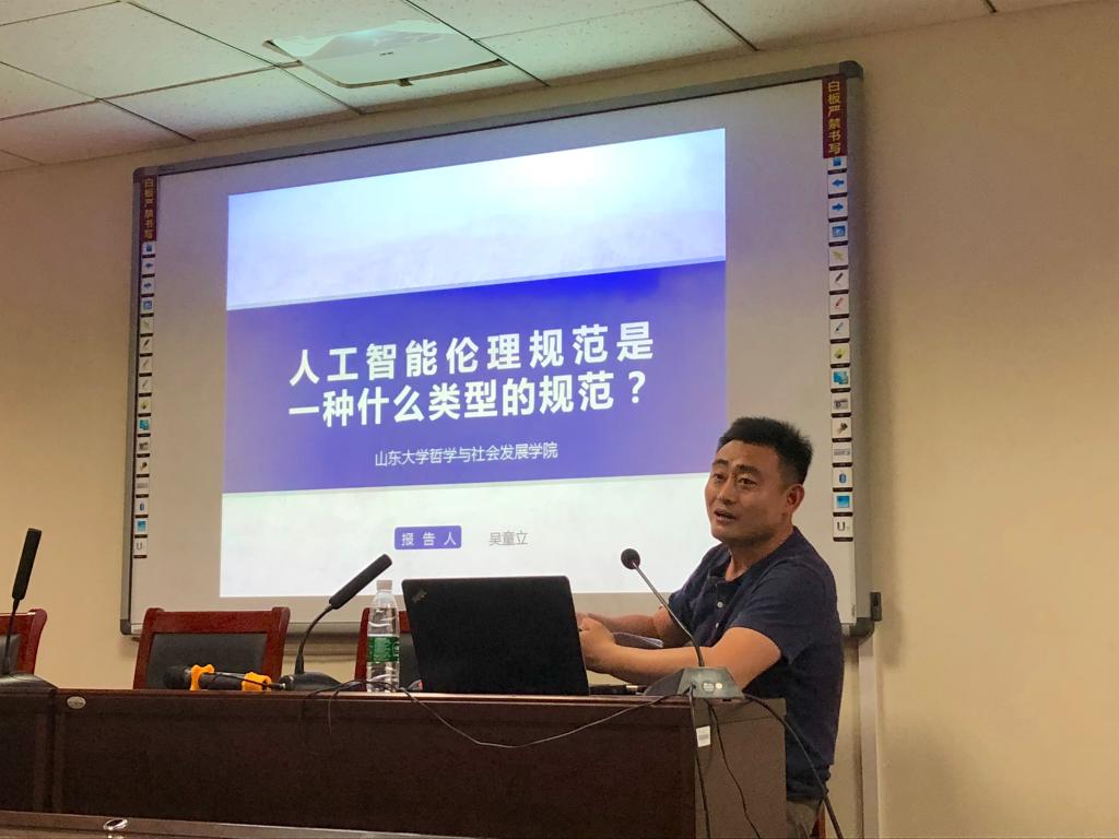 5月15日晚,beat365第28期思想者论坛在知新楼A1408室举行,哲学系吴童立副教授受邀做了题为“人工智能伦理规范是一种什么类型的规范”的专题报告。