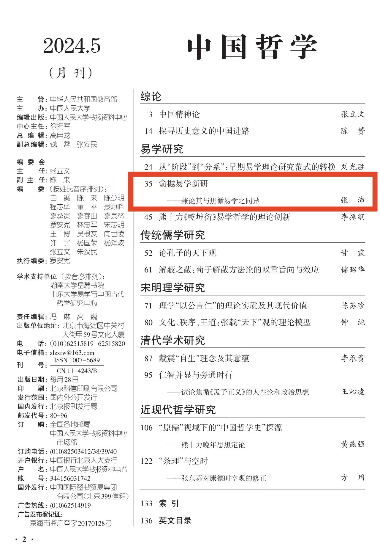 《中国哲学》精选中国古代哲学及史料学、中国哲学的特点及方法论、中国哲学的现代转化及中西哲学的比较等最新研究成果,旨在探讨先秦诸子学、两汉经学、魏晋玄学、宋明理学、明清实学、中西会通的近现代哲学,辨析儒释道三家在中国互相斗争及融合发展的历史,反映新世纪中国哲学的发展动向以及与中国社会现代化的关系,设有综论、易学研究、传统儒学研究、诸子学研究、宋明理学研究、道家思想研究、现代中国哲学研究等亮点栏目。