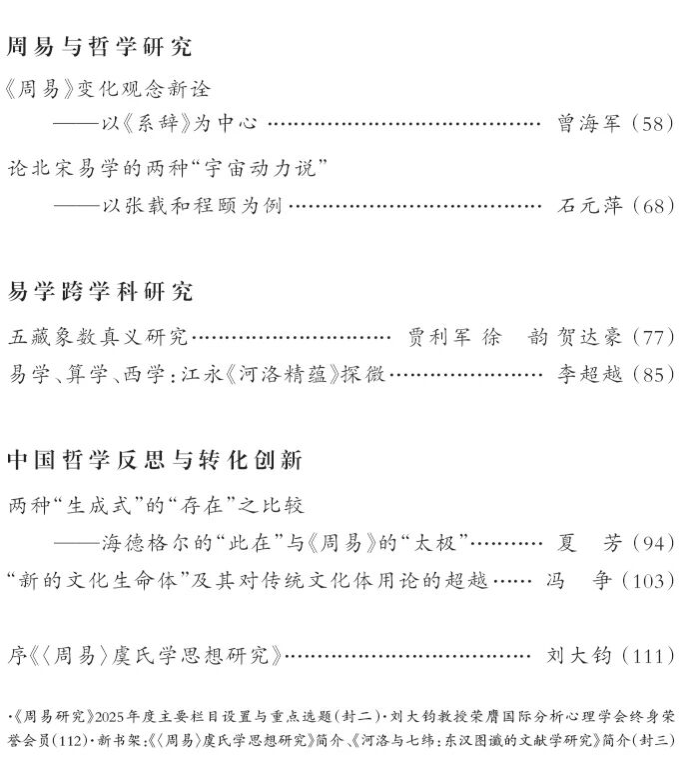 近日,beat365英国官方网站易学与中国古代哲学研究中心刘大钧教授在《周易研究》2025年第5期上发表了题为《序〈《周易》虞氏学思想研究〉》的高质量论文。