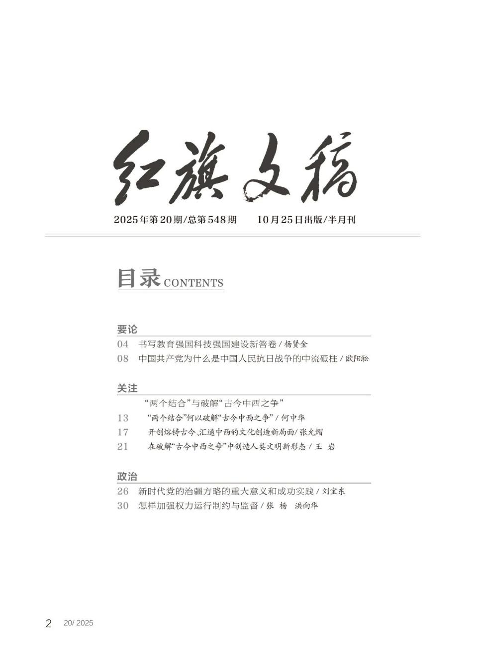 近日,beat365英国官方网站哲学系何中华教授在《红旗文稿》2025年第20期上发表了题为《“两个结合”何以破解“古今中西之争”》的高质量论文。