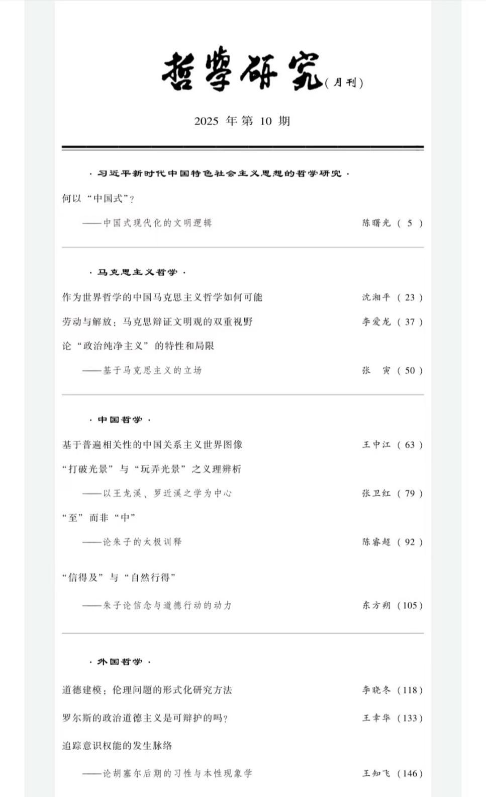 beat365英国官方网站李晓冬副研究员在《哲学研究》发表学术论文