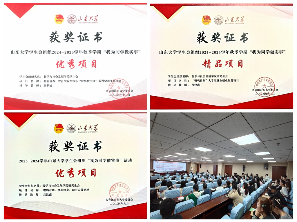服务实践,打造向学氛围。以“嘤鸣”系列品牌活动为抓手,举办校友创新创业经验分享会、简历设计大赛、模拟求职大赛、生涯发展讲座等二十余场,荣获“我为同学做实事”精品项目和优秀项目,在交流中明晰前路;依托“乐智者”青少年哲学项目,举办乐智者青少年哲学夏令营,在实践中探索学理;编印学院教师作品集《知新文萃》,将哲社名家专著融入迎新“青春行囊”,以“哲思凝慧,社论万象”品读征文为契机,评选出优秀征文14项,在阅读与书写中激发思辨;举办“逐光而行·科学家精神宣讲报告会”,在聆听中厚植信念;赴济南浪潮集团、超算中心科技园、泰康儒园康养中心、百里黄河风景区等地开展企业调研,组织班子成员和支部书记赴深圳访企拓岗,内联外动,扎实推进哲社学子高质量就业。