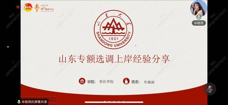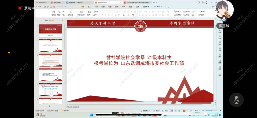 1月25日晚7点至9点,一场干货满满的“基层选调,服务民生”经验分享会准时举行。此次分享会邀请到了2021级本科生童瑞、侯嘉诚和2022级研究生牟晓雨,他们结合自身丰富的阅历和经验,为怀揣梦想的同学们带来了一场知识盛宴。