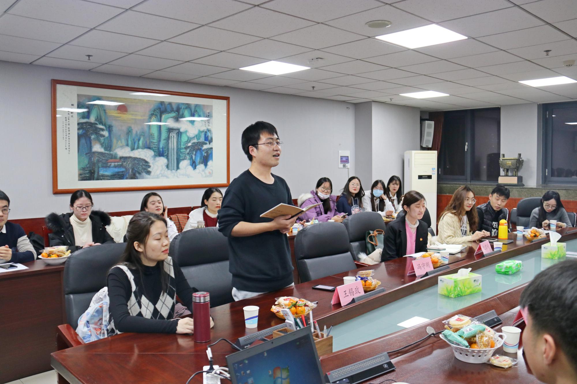 2021年12月23日晚,beat365英国官方网站第22届研究生会第二次全体会议暨2021-2022学年上学期工作总结茶话会在知新楼A1618会议室成功召开。学院辅导员冯守刚及研究生会全体成员参加活动。