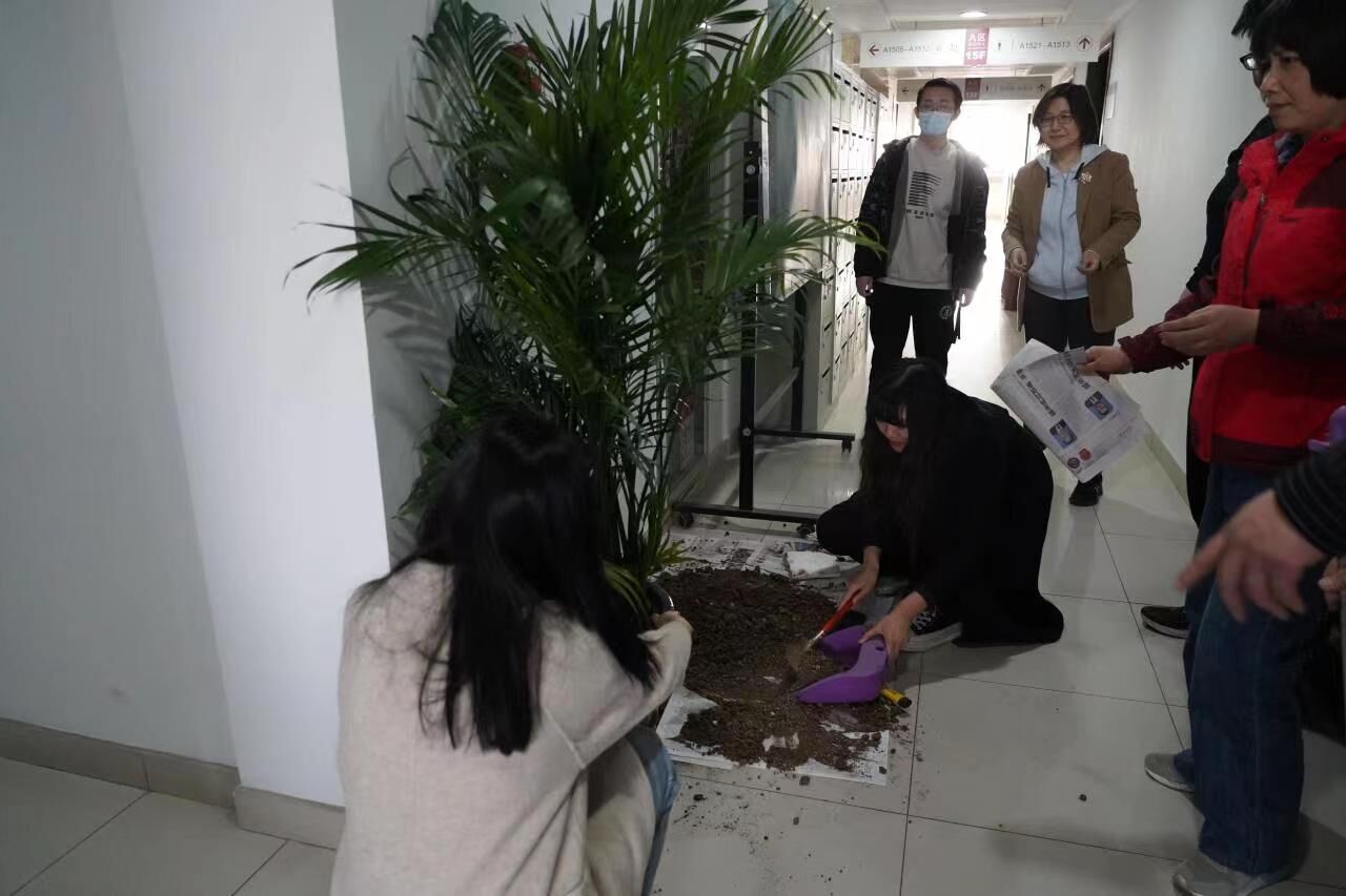 活动中,支部党员传承我党艰苦奋斗、勤俭节约的工作作风,收集、整理和重填原有花盆,按照花盆的大小、采购一些适宜的花草绿植。材料备齐,大家分头行动,填土固壤、浇水归位,互相配合、共同协作,圆满完成。看着一盆盆赏心悦目的绿植,大家脸上都漾溢着喜悦的笑容,体验了劳动带来的快乐。