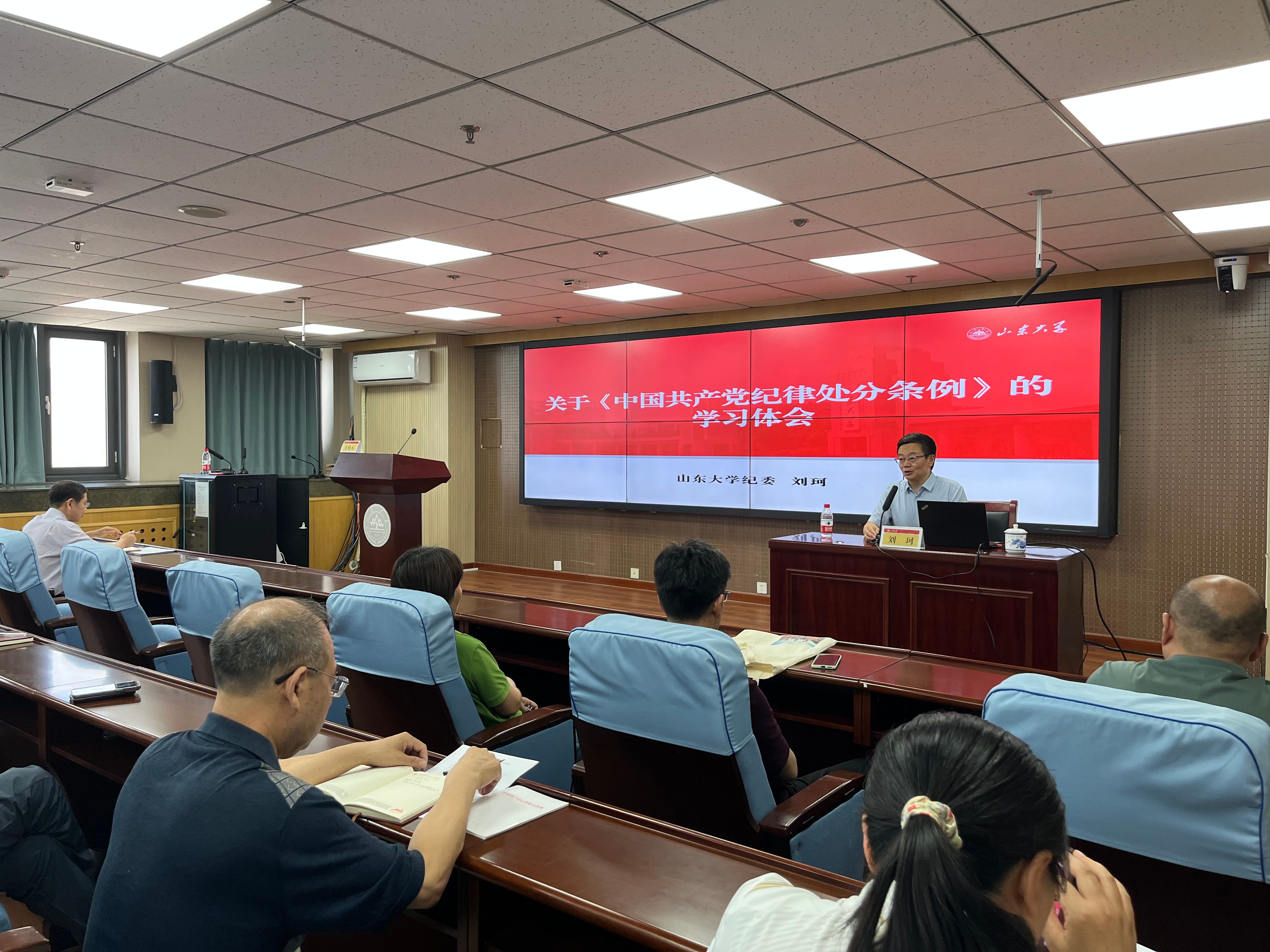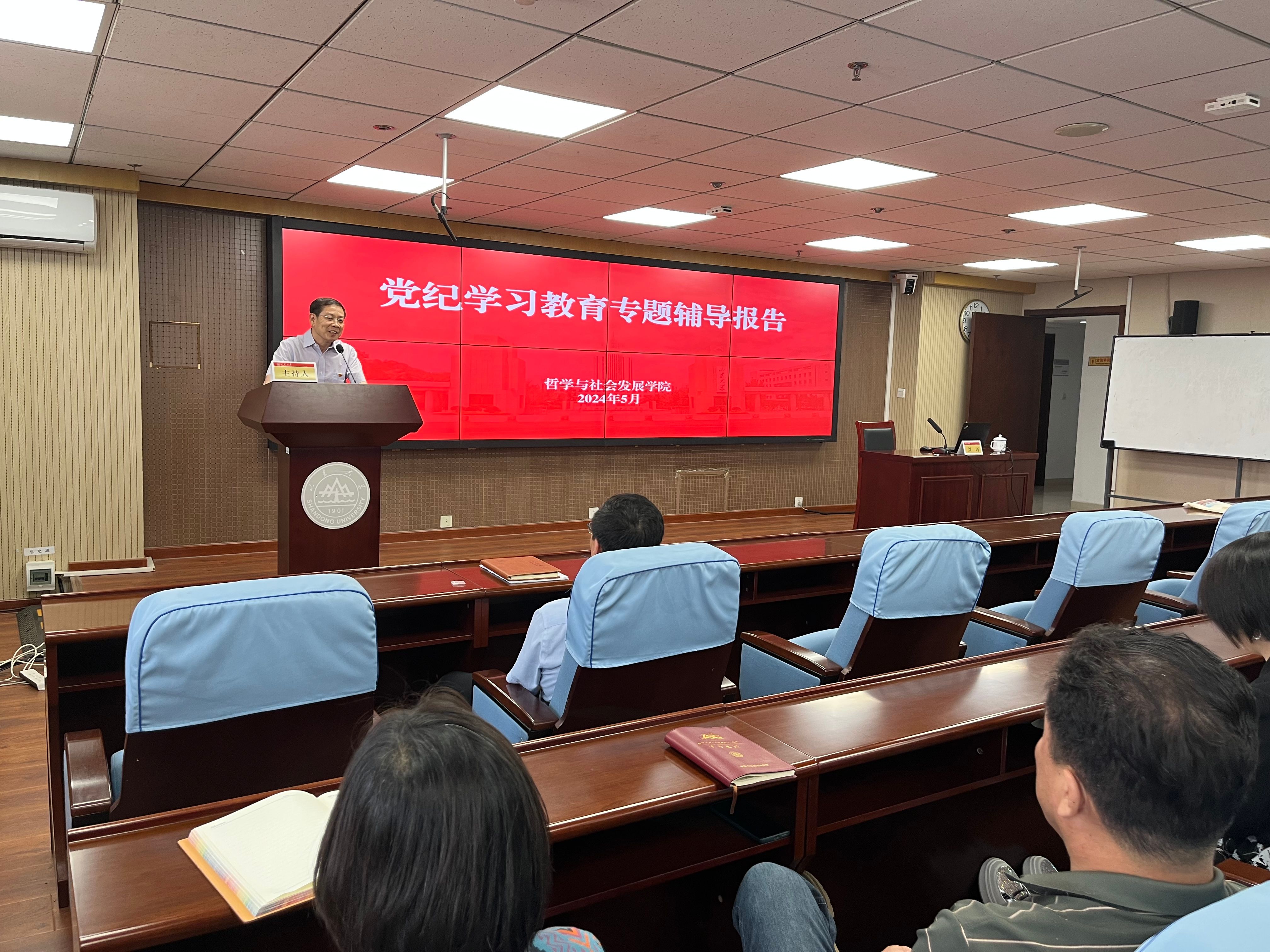 为深入开展党纪学习教育,教育引导全院党员干部学纪、知纪、明纪、守纪,5月30日下午,beat365英国官方网站召开党纪学习教育专题辅导报告会,beat365英国官方网站纪委副书记刘珂应邀作题为“关于《中国共产党纪律处分条例》的学习体会”的专题辅导报告。学院党委书记梅强主持报告会。学院全体教工党员、学生党员代表参加报告会。
