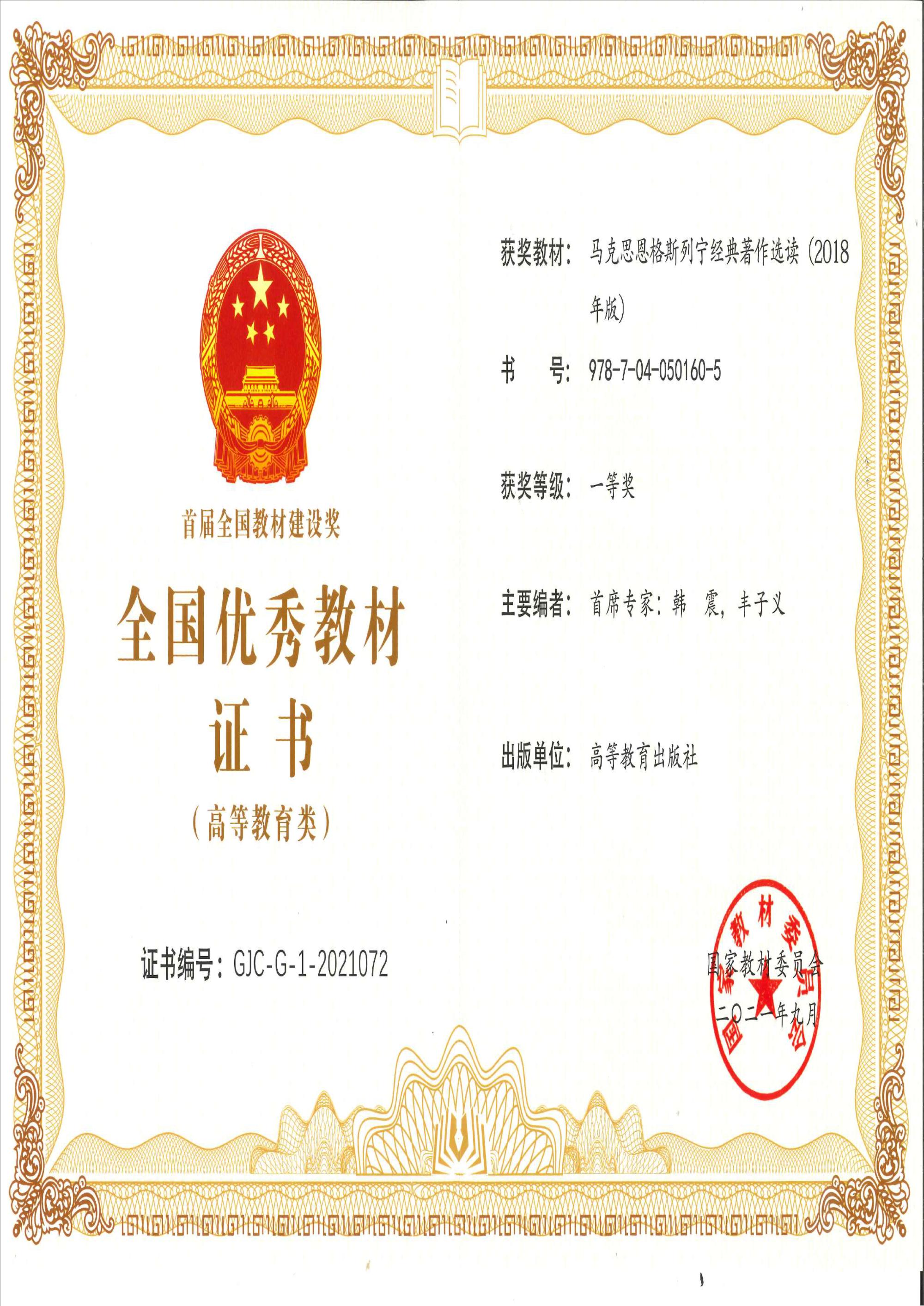 近日,国家教材委员会发布了关于首届全国教材建设奖奖励的决定,全国共有10种教材获得“全国优秀教材特等奖”,200种教材获得“全国优秀教材一等奖”。beat365英国官方网站院长刘森林教授作为主要成员编写的“马工程”教材《马克思恩格斯列宁经典著作选读》荣获首届国家教材建设奖一等奖。