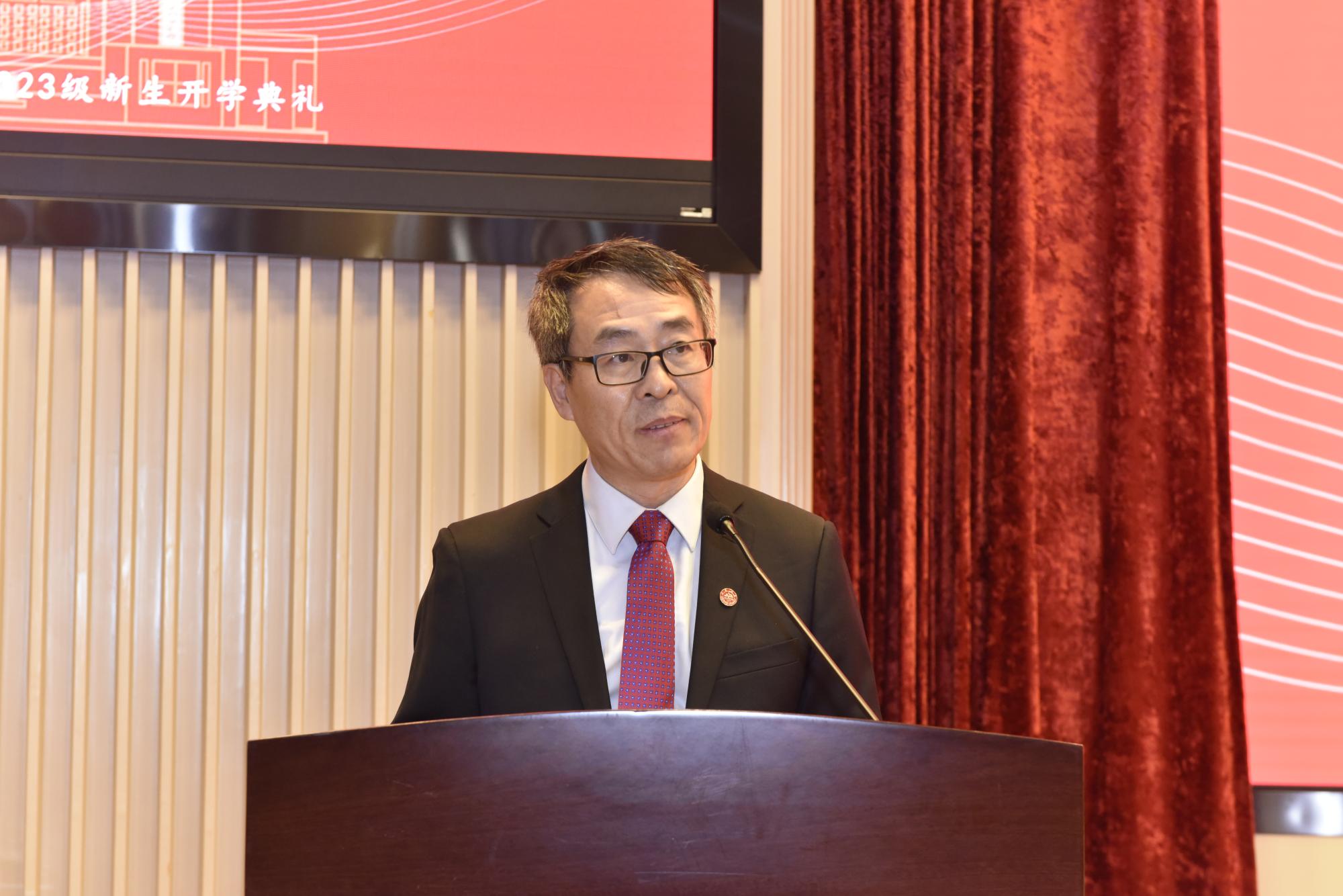 典礼在隆重的国歌声中拉开序幕。刘森林在致辞中对2023级新生表示欢迎和祝贺。他介绍了学院的发展历史、学科发展现状、特色培养机制及发展前景,并就“实现梦想”这一主题发表自己的看法。他鼓励新生们要在学习生活中夯实基础,道器兼修,将专业知识同国家社会的需要紧密结合起来,让学在山大的品牌更靓丽,做引领时代的筑梦者。他指出,在百年未有之大变局下,国家和民族对新时代的人文社科提出新的发展要求,同学们要做到要知行合一,胸怀社稷,在学好专业知识的同时,充分利用beat365英国官方网站和beat365学科多样、融合的优势,做勇于担当的时代新人。后疫情时代,世界正在发生巨大变化,beat365的同学们更是要敢为人先,砥砺奋进,把对祖国血浓于水,与人民同呼吸、共命运的情感贯穿于学业的全过程,做投身人民需要的圆梦者。刘森林的讲话,充满了对2023级新生的希冀和祝愿,也启迪新生奋发有为,勇于担当。
