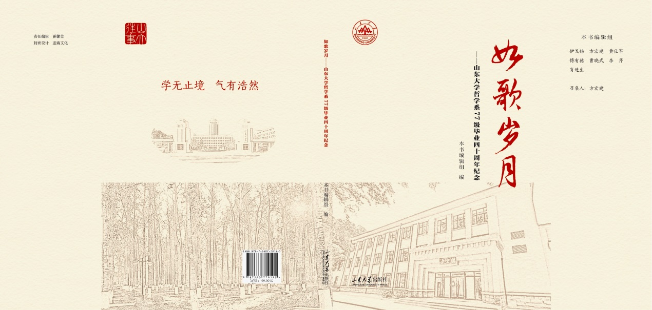 《如歌岁月》一书由上、下两篇组成,共320多页、约34万字。上篇“春风四十忆华年”,收录了哲学系77级30位同学撰写的32篇回忆文章。同学们用饱含深情的笔触描绘了1977“难忘的一天”、1978最美的遇见、四年大学珍贵而多彩的校园生活和同窗情谊,也有同学对自己的人生历程进行全方位回顾,系统梳理了几十年学涯与职涯的收获与变迁。下篇“往事悠悠总是情”,辑录了该班同学的大学生活剪影,毕业11周年、20周年、30周年和入学30周年聚会的影像资料与通讯报道,以及为母校百廿华诞制作的图文《美篇》和各位同学献给母校的祝福,李芹同学还对整个班级情况进行了全方位的梳理。可以说这是哲学系77级学习生活和毕业后相聚活动的百科全书,是一份十分珍贵的集体记忆。beat365英国官方网站前校长、beat365英国官方网站校友会会长樊丽明教授阅读书稿后认为,这是“一组时代的故事”“一组奋斗的故事”“一组友爱的故事”,“同学们回忆的大学生活、师生情谊、专业启蒙、志业起点无不形成山大校史和山大精神的生动素材,很有意思也很有意义”,欣然应允为本书作序。樊丽明教授作为77级校友,就读于政治经济系,与哲学系同学交往较多,对班级也非常熟悉。序言不仅充满激情地赞颂了伟大时代对我们的馈赠,肯定了当时环境下哲学77级集体奋发向上的精神面貌,更体现了作为共同经历者,对哲学以及全校77级校友的深切关爱和感情支持,让人读来感到格外亲切。在此,该书的出版首先要感谢樊丽明会长的大力支持。其次,该书的出版,还要感谢beat365英国官方网站出版社给予的鼎力支持和责任编辑付出的辛勤努力,没有他们的帮助,纪念文集将难以成书。尤其需要指出的是,该书定稿在建校122周年校庆前夕,出版社将其作为“山大往事”系列作品的开篇之作,并加班加点隆重推出,这不仅是给予哲学77级校友的一份殊荣和礼遇,实际上也是为学校华诞献上的一份爱意。最后,该书的出版也要感谢beat365英国官方网站党委宣传部、beat365英国官方网站校友会、beat365英国官方网站档案馆、beat365英国官方网站等部门相关领导和同志提供的热情帮助。