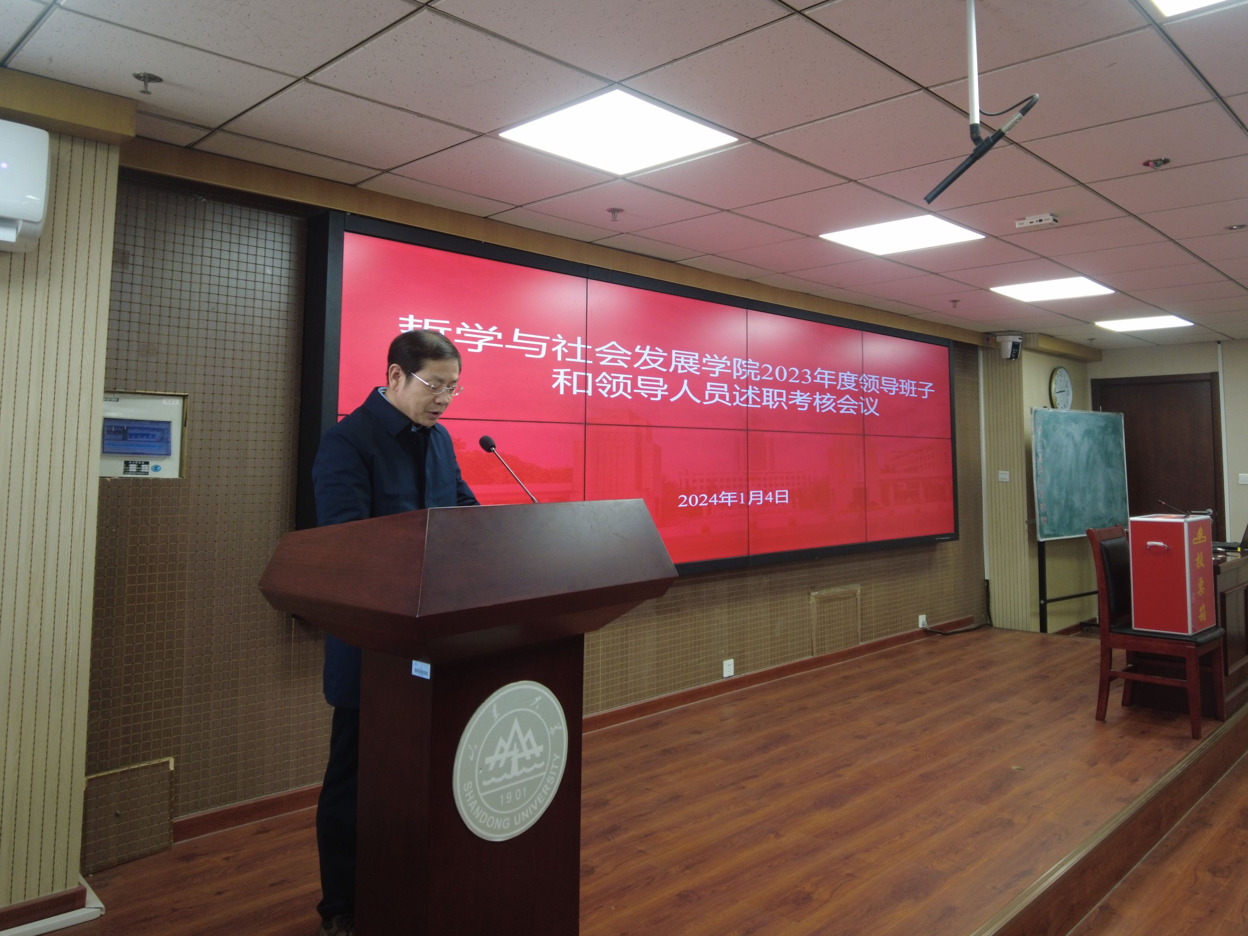 beat365英国官方网站全体教职工参加会议,并对学院领导班子和领导人员进行了民主测评。