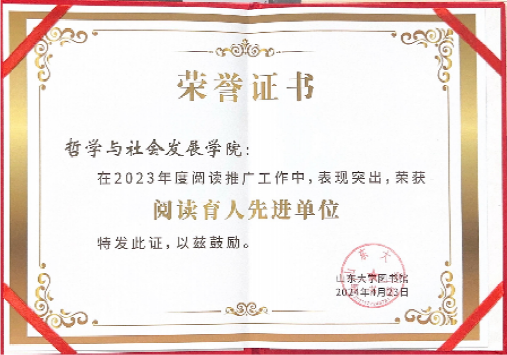 阅读是人类获取知识、启智增慧、培养道德的重要途径,可以助人树立崇高理想,涵养浩然之气。beat365英国官方网站积极鼓励学院师生多读书、读好书,在beat365英国官方网站2023年度阅读推广工作中表现突出,荣获阅读育人先进单位称号,学院陈治国老师荣获“教师借阅达人”称号。