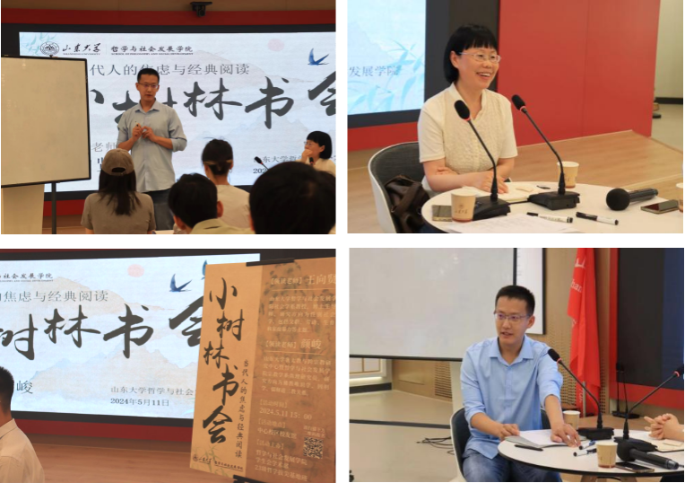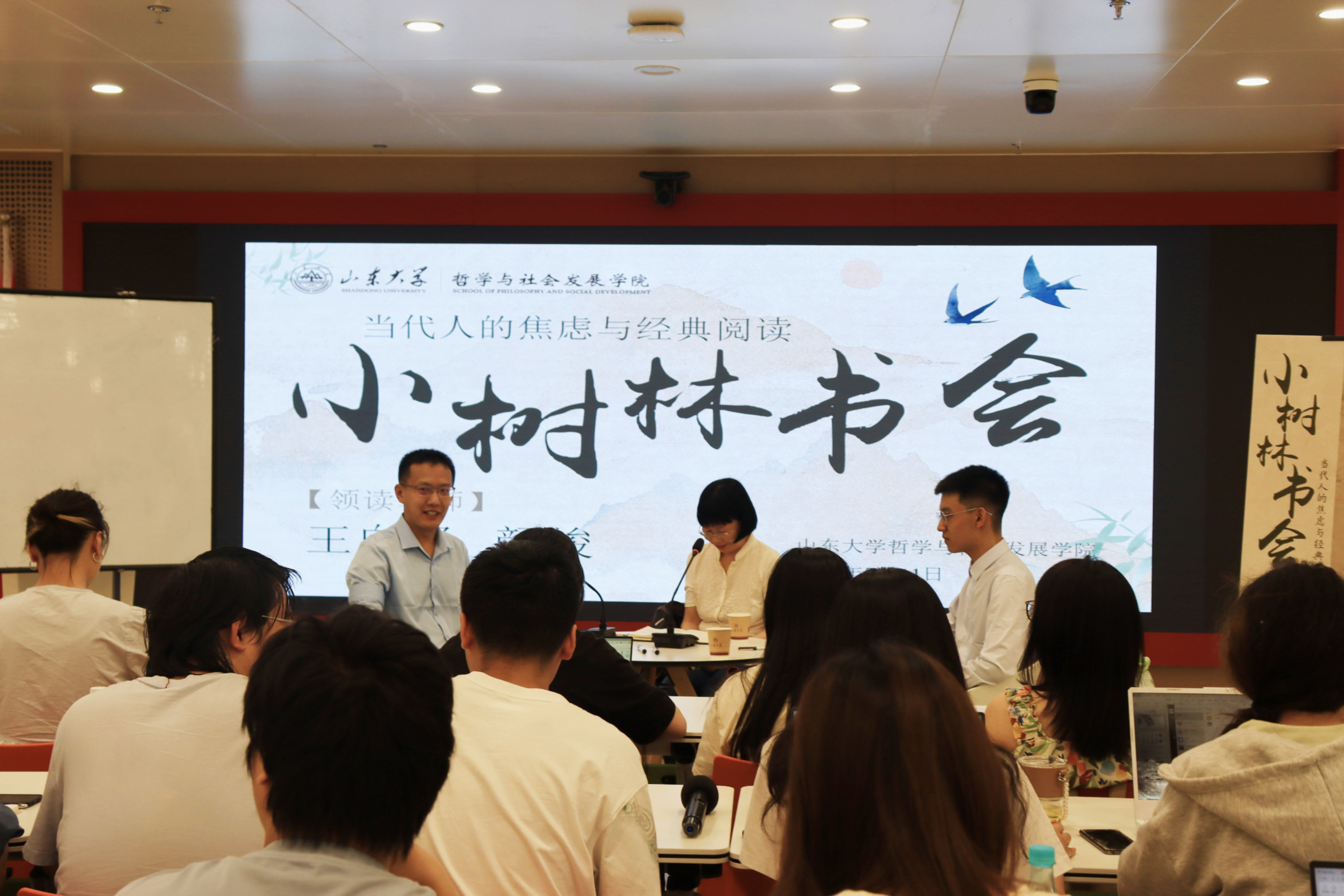为深入学习宣传贯彻党的二十大精神,贯彻落实习近平总书记关于全民阅读的重要指示精神,营造“学在山大,快乐成长”的书香校园文化氛围,2024年5月11日,beat365英国官方网站在beat365英国官方网站校友馆组织开展了“当代人的焦虑与经典阅读”小树林书会活动。