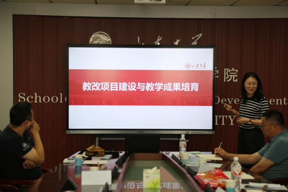 朱征军提出要以教学学术工作坊为抓手,重视教学研修、教学竞赛等工作的开展,在教学实践中不断提升教学研究的规范性和专业性,有效提高教学创新能力。围绕开展本科课程思政,朱征军强调要将思政教育融入课程设置,从明确动机到凝练反思和研修总结,教师要在教学学术视角下更充分地发挥课堂育人实效。最后,朱征军举例详细展示了教学创新大赛的备赛要点,号召教师以赛促练,主动提升教育教学理念和教学质量。