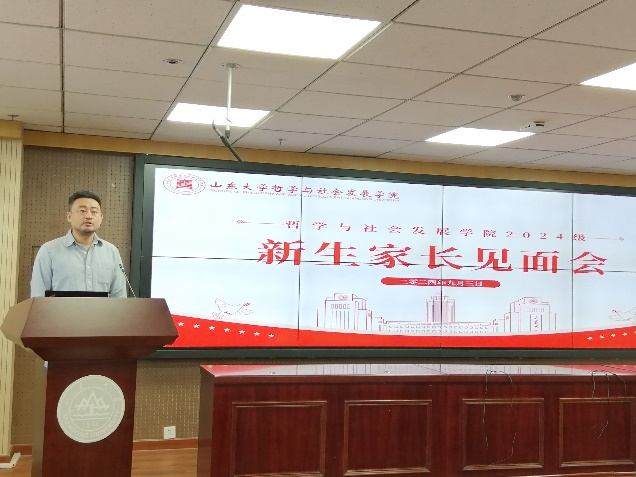 会议伊始,梅强对各位新生家长的到来表示热烈欢迎,特别介绍了学院迎新礼包“青春行囊”中,凝聚学院全体教师代表作的《知新文萃》,他指出,“爱智乐群 弘德修远”的办学理念,既包含了对知识的热爱和追求、对团队合作的重视和强调、对道德修养的提升和弘扬,也包含了对个人成长和未来目标的坚定追求。鼓励同学们在求学、工作、生活中不断追求卓越、完善自我、贡献社会。随后,吴童立围绕学院学科特色、强基计划、拔尖计划、PPE等特色班培养,本科生导师制度等进行具体介绍,并在专业培养方面就各位新生家长的疑问进行细致解答;班梦姣以“回答时代之问”为主题,详细介绍了学生思想引领、党团支部、实践创新、品牌活动以及奖助学金等方面的具体工作;翁祥栋围绕“向阳而生,携手筑梦”的主题,对坚实学术功底、广阔国际视野、强烈社会责任感的优秀本科生培养进行具体阐释,鼓励新生家长陪伴和支持学生进行职业生涯规划、理解和关注学生的心理状态,共同建构家校共同育人新空间。