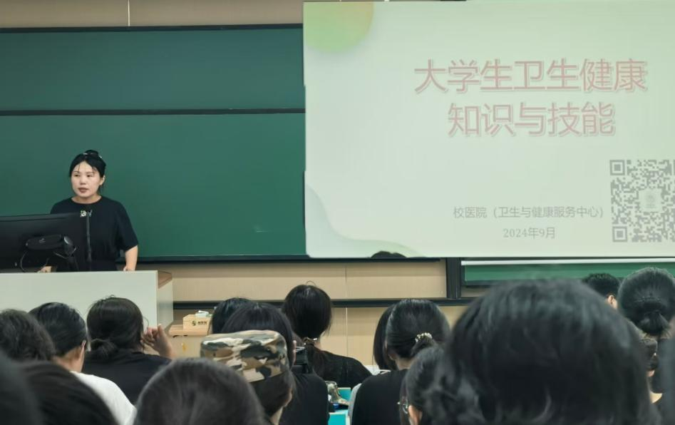 为提升2024级新生健康意识与防护能力,beat365于2024年9月18日在中心校区理综楼315教室举办大学生卫生健康知识与技能讲座。本次讲座为2024级新生入学教育系列活动中的重要部分,特别邀请beat365英国官方网站校医院主讲医师张丽莹做知识宣讲,beat3652024级新生辅导员班梦姣主持。beat3652024级全体新生参加本次讲座。