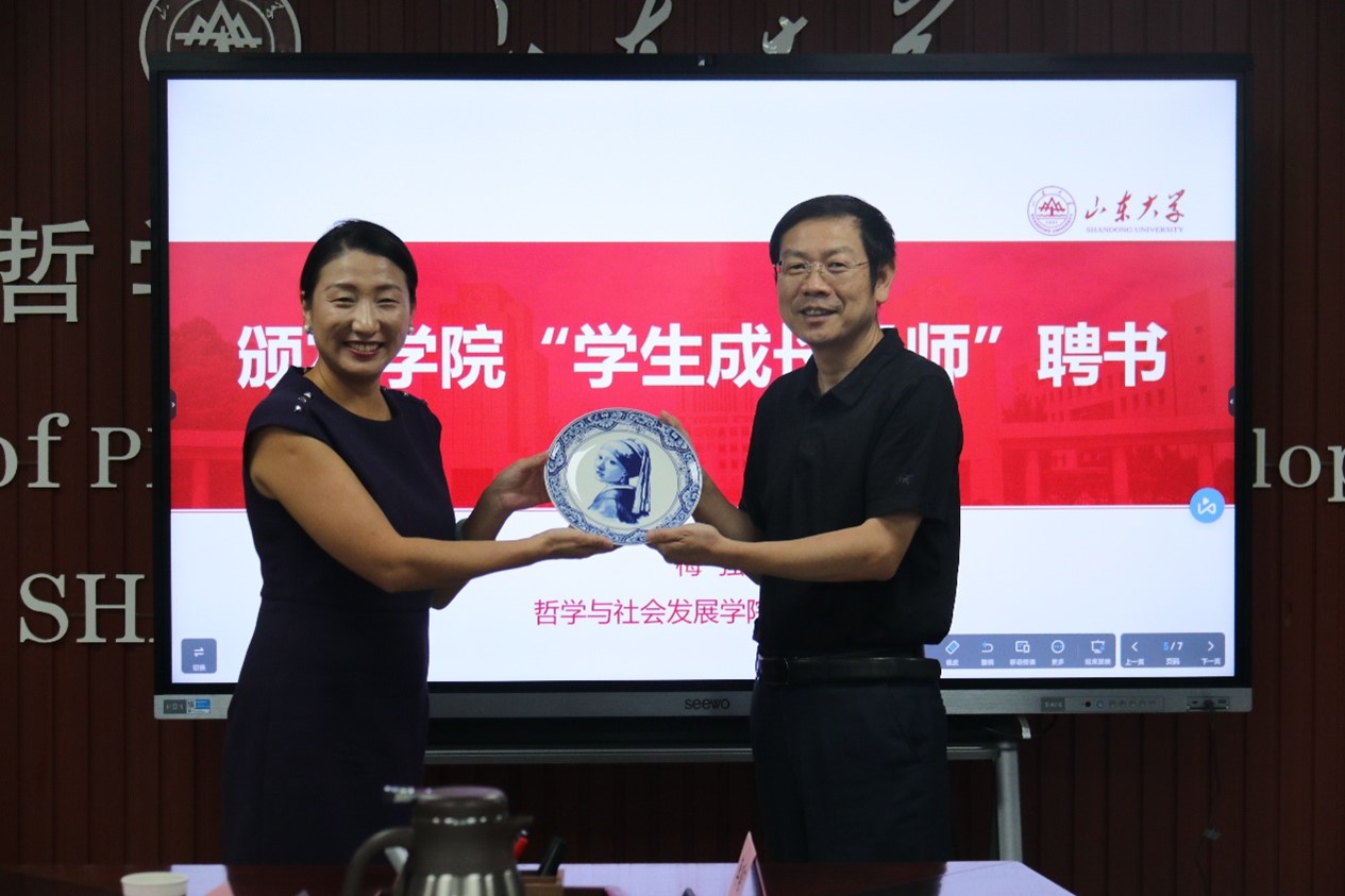 最后,梅强为常文佳颁发“学生成长导师”聘书,双方互赠纪念品。梅强表示,学院将一如既往地支持校友的发展,紧密团结全球校友,期待更多校友能够回到母校提出宝贵建议和发展建议,深度参与学院高质量发展。