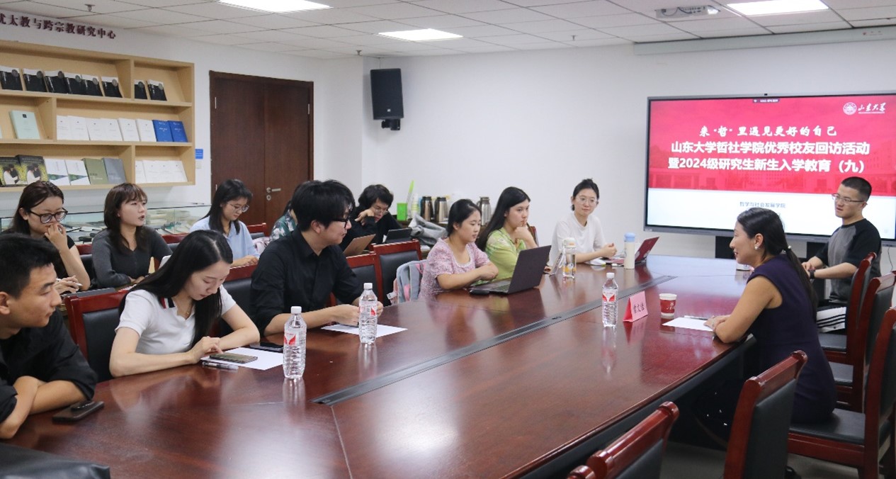 在会议第二环节,常文佳与我院社会学、社会工作专业硕博研究生开展交流座谈,并就同学们的职业发展规划、学术科研创新和学业深造计划进行专业指导。她鼓励研究生新生要明确个人发展目标,勇于面对各类挑战,用发展的思维和创新的思路制定符合个人情况的成长规划。座谈现场氛围融洽热烈,与会的研究生对常文佳学姐的指导表示感谢,对本次校友座谈活动给予了高度评价。