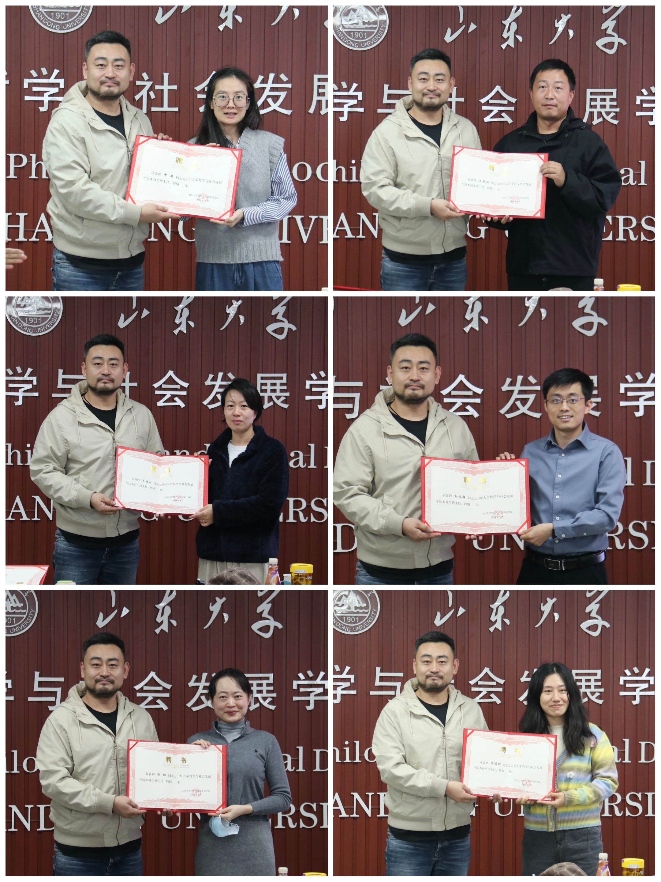 吴童立为2024-2025学年新聘班主任颁发聘书,鼓励各位班主任牢记为党育人、为国育才的初心使命,在班主任的岗位上积极履职,加强与任课教师、辅导员沟通联系,保障信息通畅,共同服务好学生成长发展。