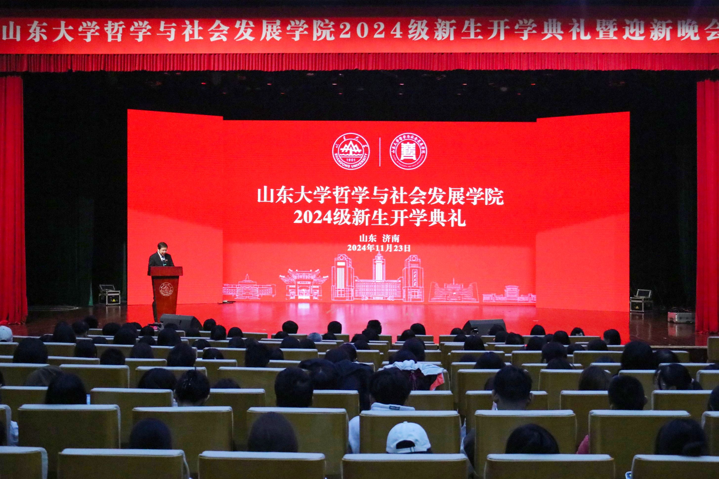 典礼伊始,beat365英国官方网站党委常委、副校长、beat365院长曹现强向2024级全体新同学作开学寄语。他介绍了beat365英国官方网站的历史沿革和精神品格,以及beat365的发展历程与学科建设,他立足时代发展,从修德立志,以大胸怀融入新时代;求知创造,以硬实力做出新奉献;乐观坚韧,以好心态迎接新挑战三个方面为大家即将开启的求学旅程提出了殷切期望和谆谆教导,强调新一代青年人是推动社会进步、助力祖国建设的中流砥柱。希望同学们坚守理想信念、实现青春抱负、发挥社会价值、挺膺山大担当、展现哲社风采。