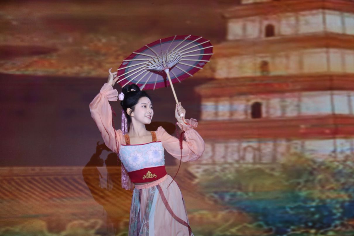 箫韵悠长,琴音袅袅,民乐合奏《十年人间》,让师生沉浸于传统乐器承载的厚重历史和时代光彩;粉墨登台,风华绝代,一曲京剧《卖水》、一舞《云伞惊鸿》,展现了新青年传颂着的国粹风骨;社会学系解玉喜、宗教学系王强伟、研究生辅导员吕汶鑫三位老师与研究生合唱《音有爱》,奏响导学心灵的和谐乐章,共同唱响属于学院的守护与陪伴;团委书记班梦姣、班主任毛林林与青年志愿者协会的志愿者们以青春活泼的手势舞,生动演绎哲社学子热心助人,服务社会的责任担当与奉献热忱。