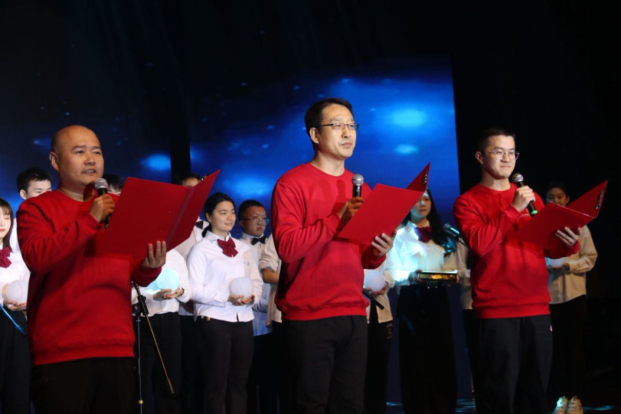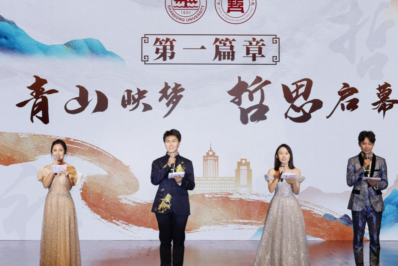 哲社师生昂扬向上的精神风貌与多才多艺,令观众热情高涨,点点荧光汇成星河,声声喝彩响彻舞台。抽奖互动环节同样令人紧张而激动,学院党委书记梅强、副书记马燕、王文方教授抽取幸运观众,现场气氛热烈。最后,2024级哲学强基班班主任陈佩辉老师、2024级本科新生李心怡、硕士新生杨阳与全体演职人员登台献唱《我的山大我的家》,用歌声为本场晚会画上圆满句号。