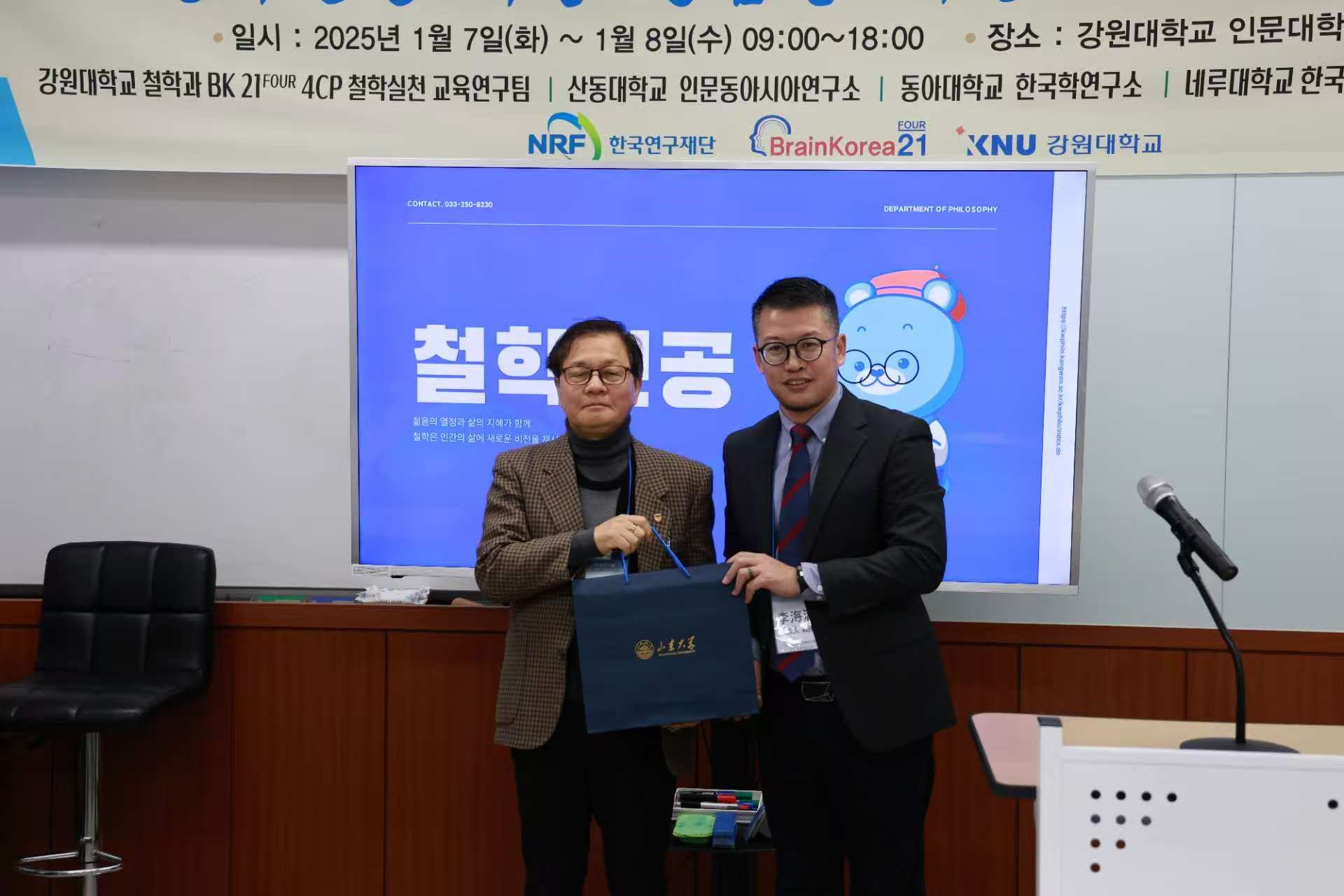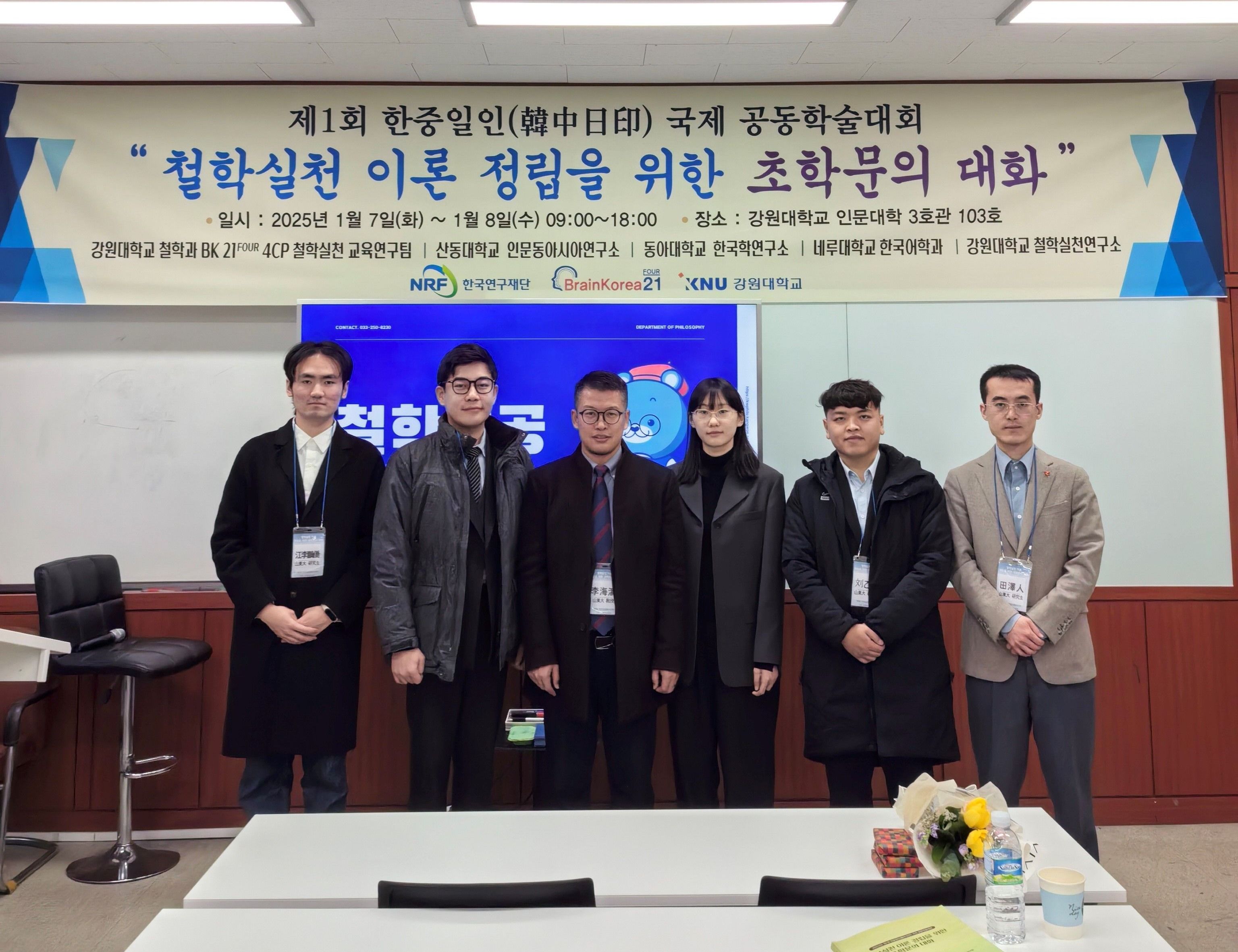 2025年1月6日至9日,beat365英国官方网站李海涛副教授受邀率人文东亚研究团队访问韩国国立江原大学,参加第一届国际哲学实践会议(The International Conference on Philosophical Practice)。本次会议主题为“Transdisciplinary Dialogue for Establishing Philosophical Practice(建立哲学实践的跨学科对话)”。会议旨在将东亚儒·释·道、中西哲学比较研究的讨论,推进至哲学的实践与应用层面。beat365英国官方网站博士后宋陆,博士研究生田泽人、刘乙澜,硕士研究生江李鹏侨、刘致宁一同参会并发表学术论文。