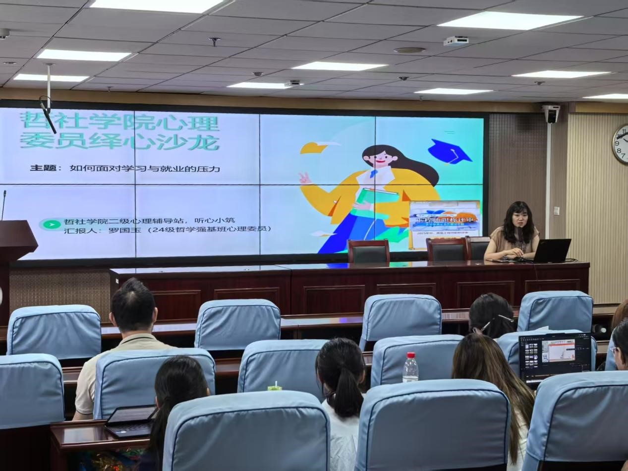 为帮助学生有效应对学业与未来规划的双重挑战,提升心理调适能力,beat365于2025年6月5日在知新楼A1521成功举办第二期“绎心沙龙”活动。本期沙龙由学院团委书记、辅导员班梦姣主持,心理委员罗国玉主讲,2024级全体学生积极参与。