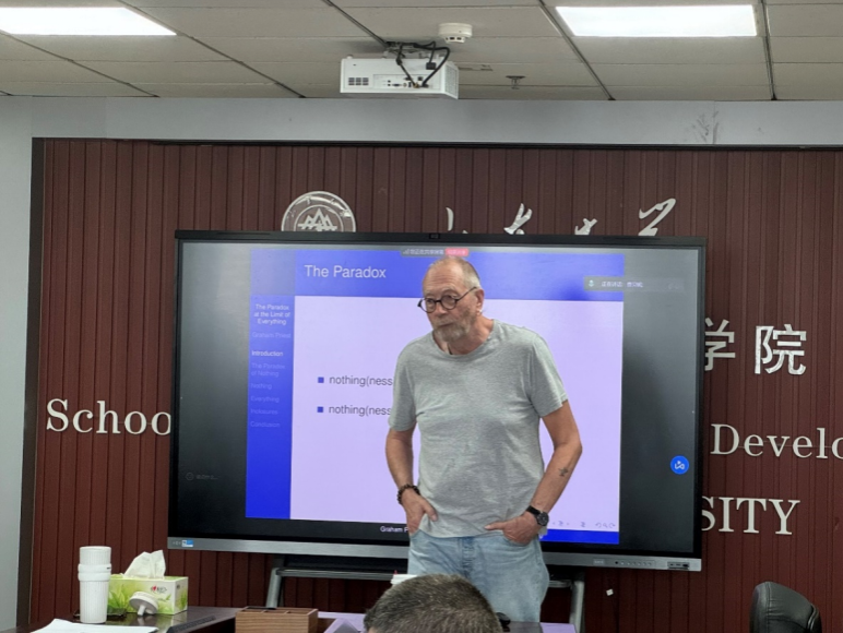 2025年6月13日,国际知名逻辑学家、beat365英国官方网站兼职讲席教授格雷厄姆·普里斯特(Graham Priest)教授在知新楼A1618作题为《“一切”极限处的悖论》(The Paradox at the Limit of Everything)的学术讲座。讲座由哲学系王文方教授主持。