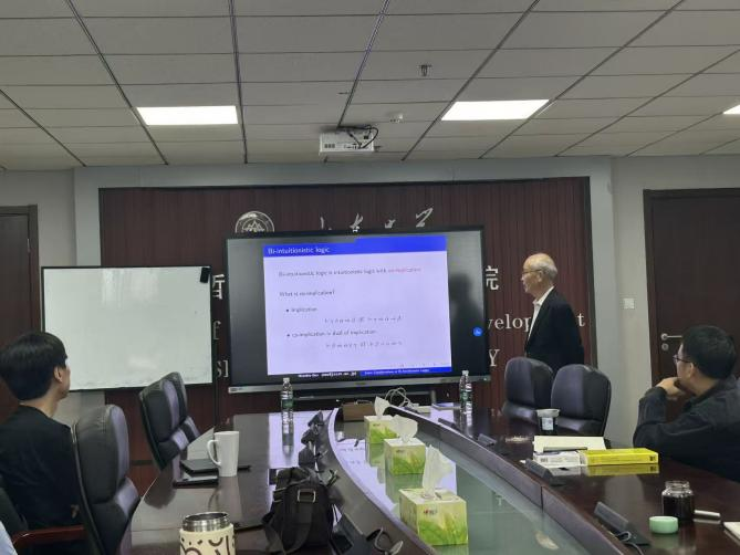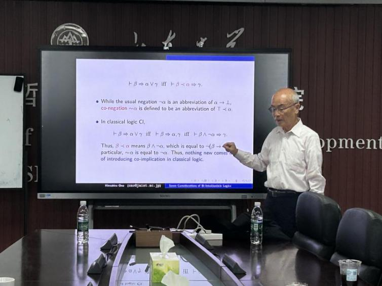 2025 年 9 月 22 日,“望岳——海外名师论坛”第14期在知新楼 A1618 举行。此次论坛邀请到日本北陆先端科学技术大学院大学小野宽晰教授做题为 “Some considerations of bi-intuitionistic logics” 的学术报告,报告由beat365梁飞老师主持。讲座前,梁飞老师先简要介绍了小野(Ono)教授的工作 —— 尤其是在“子结构逻辑”上成果的重要意义,且小野教授是少数在学术界获得广泛国际认可的亚洲逻辑学家,随后对小野教授到来表示欢迎。