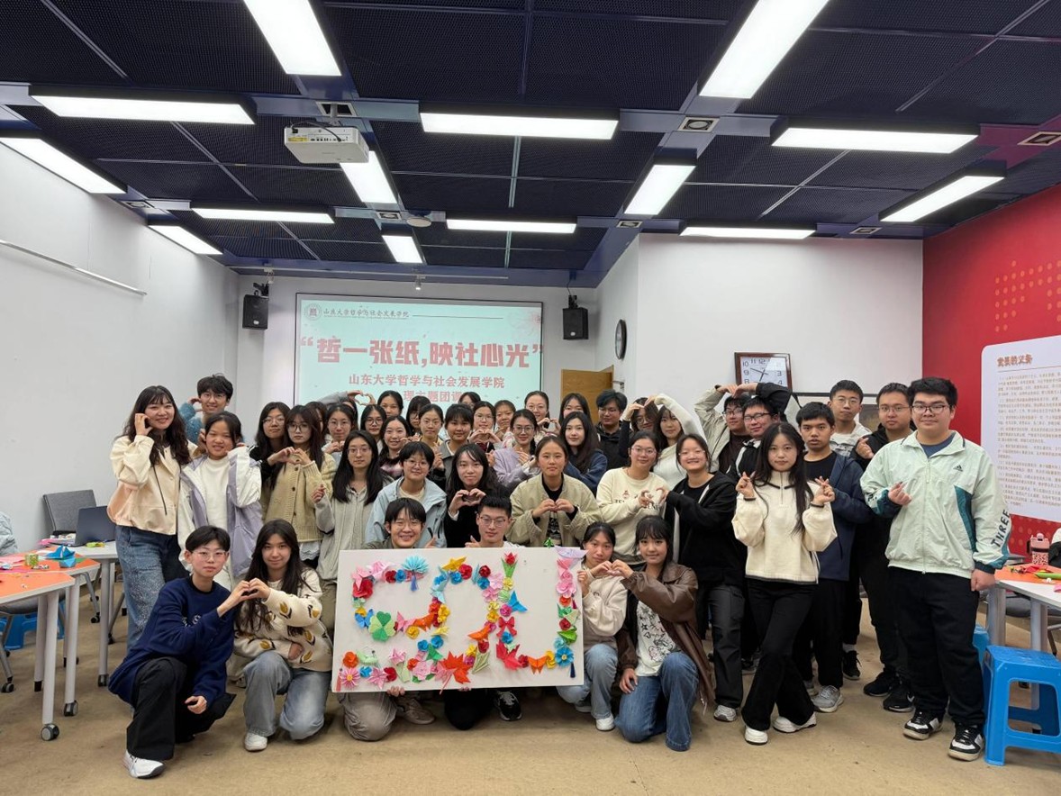 最终,各小组的折纸作品被巧妙拼接成“SDU”造型,既凝聚了师生协作的创意与心血,更以具象化表达诠释了“学在山大,快乐成长”的校园情怀,彰显了山大学子在文化浸润与心灵滋养中向阳生长的精神风貌。