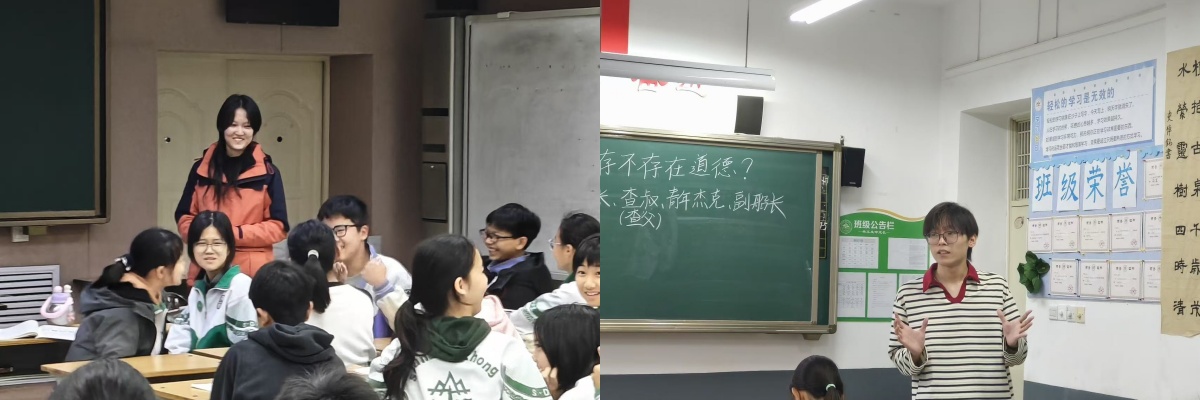 课程实施以来,学生逐步形成了主动提问、乐于表达、敢于质疑的课堂习惯,批判性思维与团队协作能力显著提升。值得一提的是,不少学生在课后自发阅读哲学读物,运用哲学视角独立思考和解决问题的能力持续增强。对于参与授课的beat365英国官方网站beat365学子而言,这一教学过程不仅是将专业知识转化为育人实践的生动课堂,更是深化教育理解、提升社会责任感的重要平台。此次合作极大地丰富了中学的校本课程体系与校园文化内涵,为青少年哲学教育提供了可供推广的实践样本。面向未来,团队将立足学院学科优势,持续聚焦课程体系化、队伍专业化和育人模式创新三大核心任务,实现青少年哲学教育覆盖面和影响力的全方位跃升,为培养具有独立思考能力、社会责任意识的新时代青年筑牢坚实的思想根基。