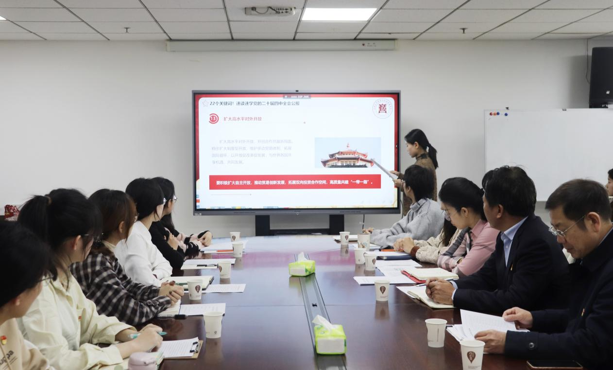 活动伊始,本科生第一党支部书记封莹带领全体党员专题学习党的二十届四中全会精神。她围绕全会提出的高质量发展、科技创新、乡村振兴、国家治理现代化等重大部署,系统解读了全会精神的核心要义和战略意义,为全体党员深化理论认知、凝聚思想共识奠定了坚实基础。