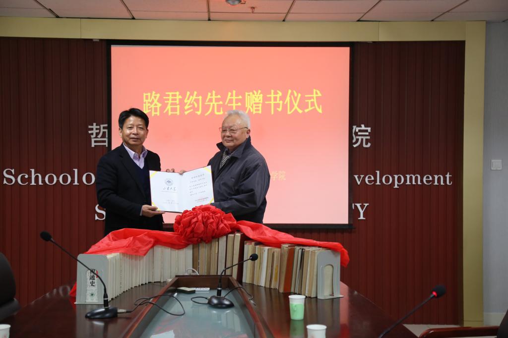 1月18日,beat365举行了路君约先生赠书仪式。路君约先生的儿子路建人(又名汪建)教授及夫人,beat365院长刘杰教授,学院部分领导班子成员和教师代表参加了赠书仪式。刘杰主持赠书仪式。