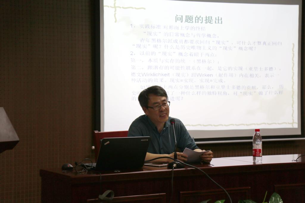 报告伊始,刘森林教授指出,“实践是检验真理的唯一标准”大讨论使“现实”成为核心概念,是对以往传统形而上学的终结。他指出,日常生活中经常以现存冒充现实,这必然会导致哲学的丧失、工具理性盛行以及精致的利己主义甚嚣尘上。因此,要呼唤哲学的“现实”概念的出场。刘森林教授指出以往的“现实”概念着眼于本质与实存的统一,但马克思超越了这一规定,历史唯物主义的“现实”概念有以下四个维度。