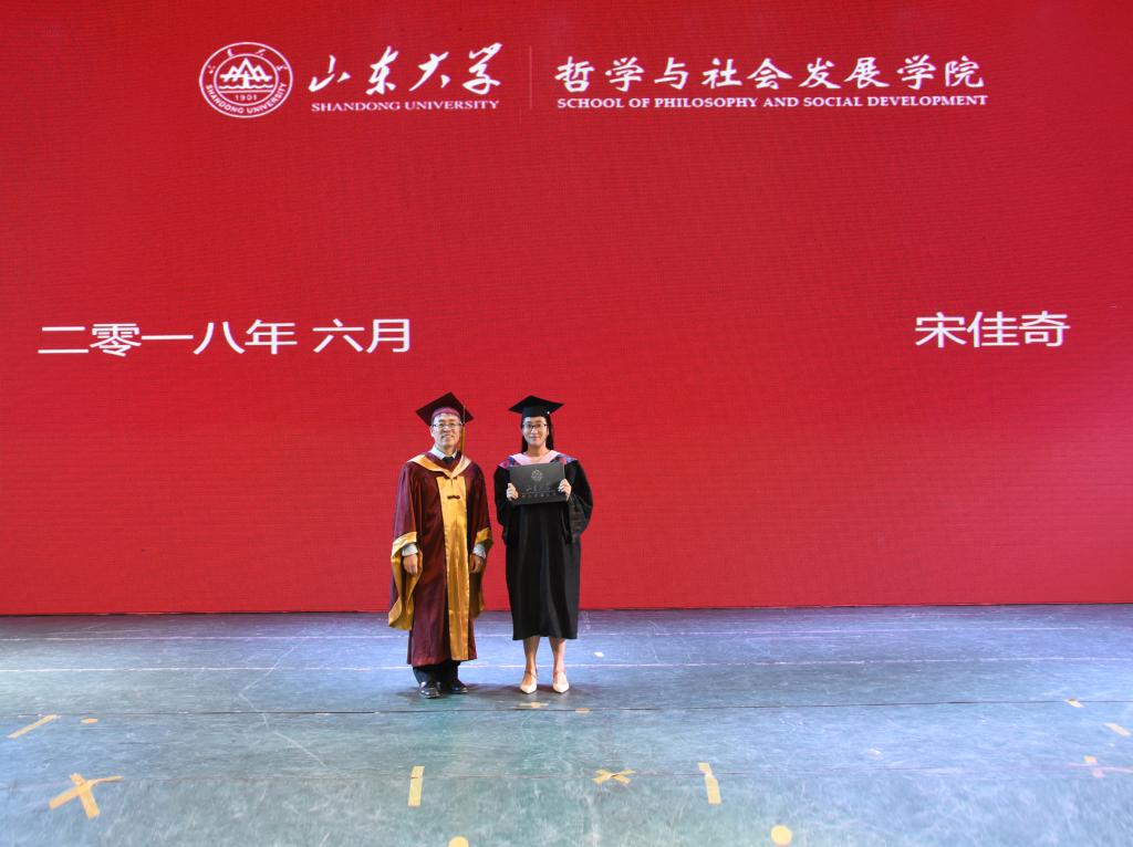 本科毕业生代表王明玉和研究生毕业生代表李佳琳分别回忆了她们在学校度过的多彩生活,并对同学们表达了对未来的祝福和希望。王明玉勾勒了“笃实好学、气有浩然、独立自信”三幅大学生活印象画笔,情到深处不禁潸然泪下。李佳琳则谈到了在beat365的7年成长历程,表达了在未来要秉承beat365优良传统,继续读书、思考,奉献新时代的信心和决心。
