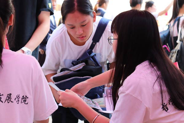 上午,樊丽明校长莅临beat365英国官方网站迎新现场指导工作,耐心听取了现场学生志愿者的汇报,并就迎新现场的工作与学院领导、老师们进行了交流。志愿者同学向樊校长介绍,新生报到的热情高涨,当日上午报到的新生人数已经过半。樊丽明对学院设计的迎新纪念品表达了赞许,她查看了学院设计的明信片,翻到背面是学长学姐亲笔书写的寄语,她称赞这是“很贴心的举动”。樊丽明在学院领导老师们的陪同下,与新生及其家长进行了亲切交流,询问新生的家乡与专业,并对其表示鼓励。