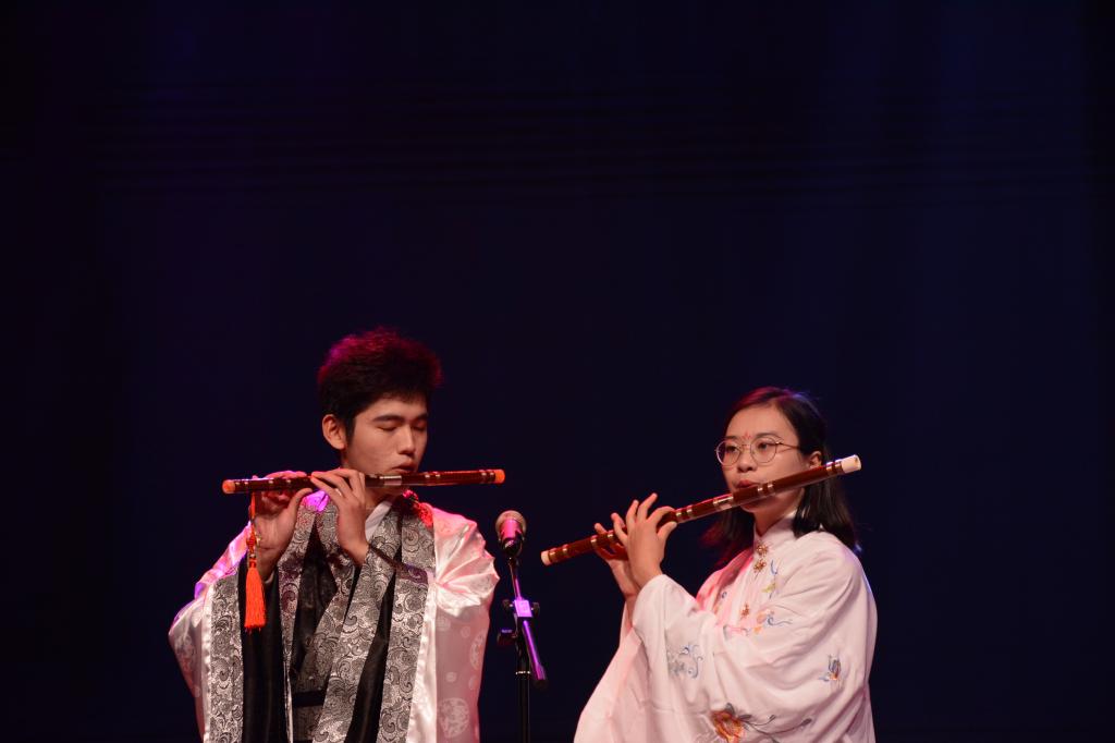 来自同道学堂的各民族同学们积极参与,活跃在台前幕后,为晚会呈现了豪迈与柔情兼备的民族风情。藏歌串烧《十年》《告白气球》《Fly》展现了藏族同学的别样风采;吉他独奏,温柔的女声静静地诉说《我怀念的》。此外,同道学堂的同学们还积极参与到实服部群舞等团体表演中。