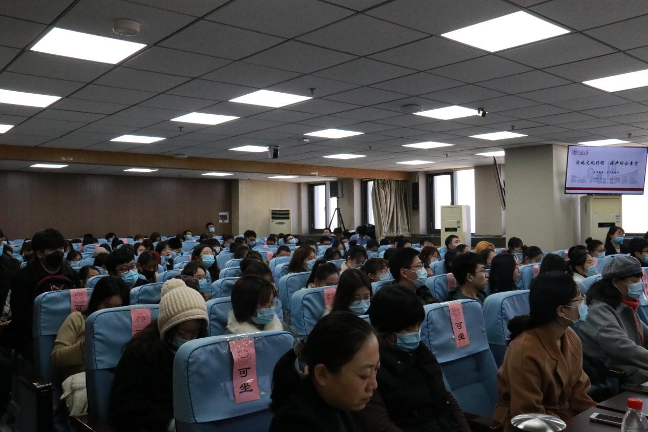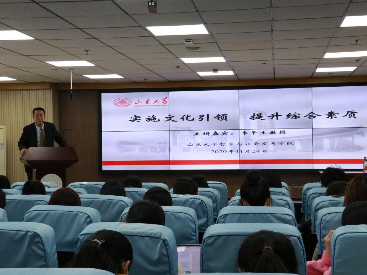 11月24日,beat365英国官方网站在知新楼A座举行“实施文化引领 提升综合素质”专题报告会。儒学高等研究院党委书记李平生教授担任主讲嘉宾,beat365党委副书记李永卫主持报告会,beat365一百五十余名师生参会。