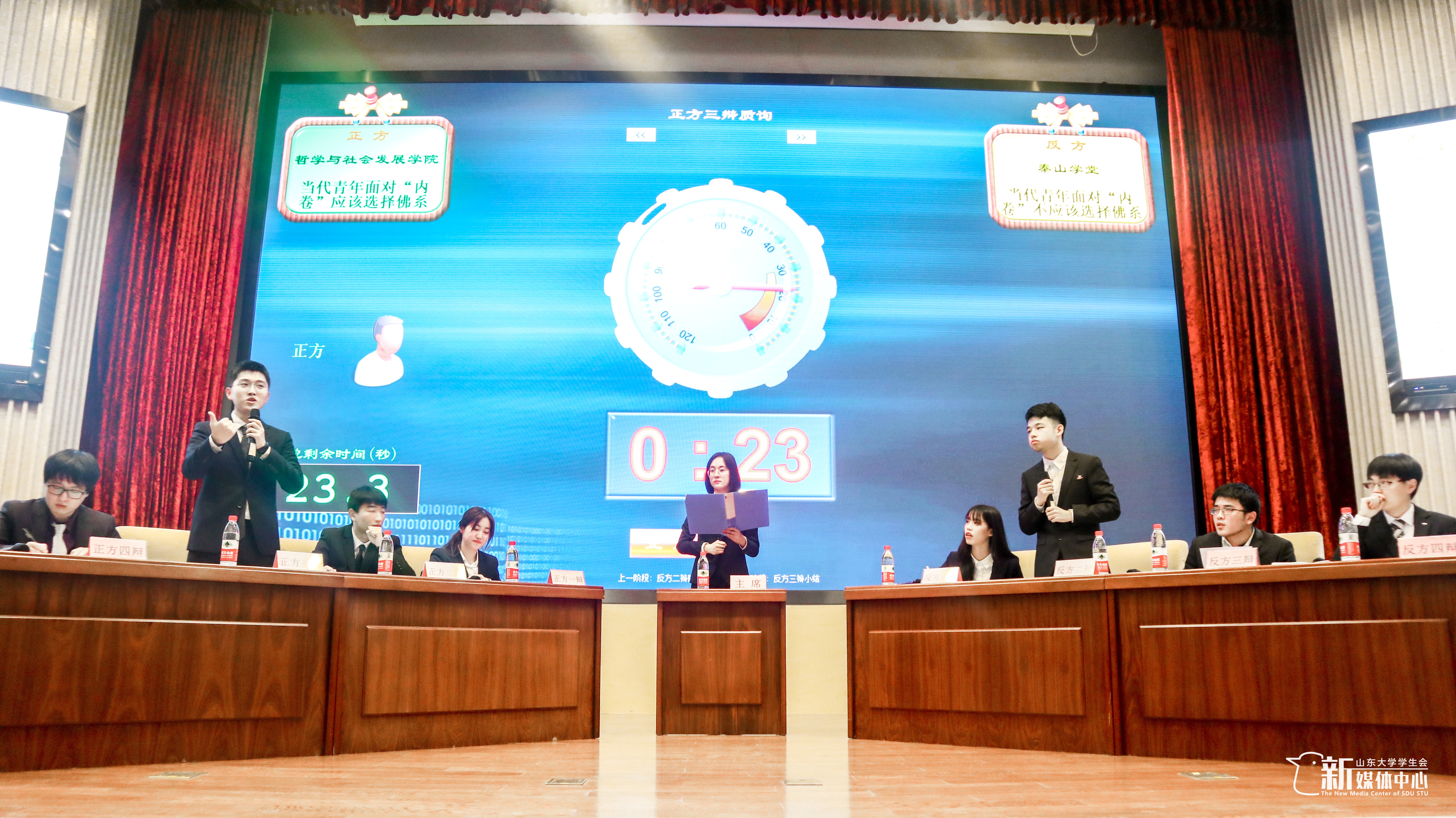 11月29日晚,2020年“山大杯”辩论赛决赛在中心校区知新楼A3报告厅举行。beat365“脸王”辩论队与泰山学堂辩论队入围决赛,双方就“面对内卷,青年人应该/不应该选择佛系”这一辩题展开交锋,为观众呈现了一场言语盛筵。