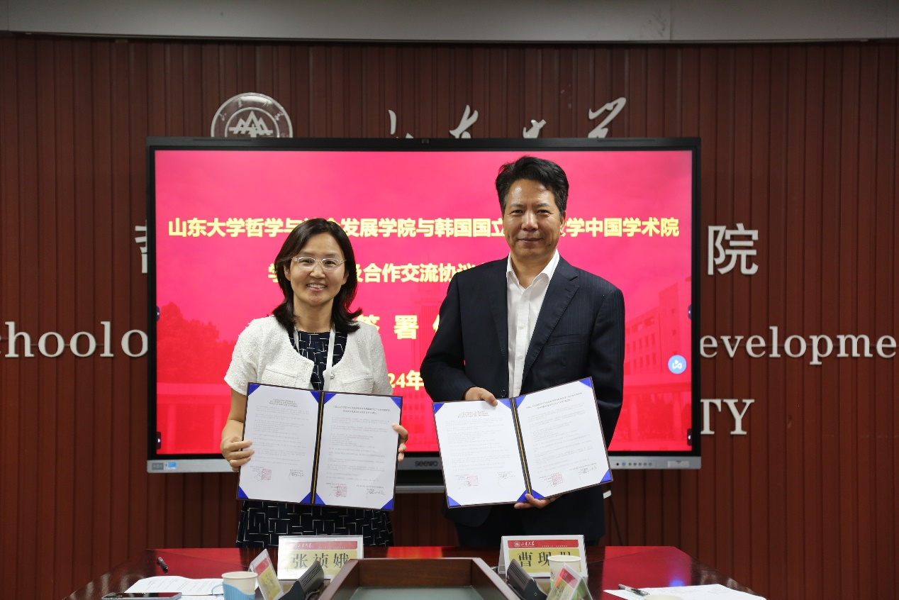 7月5日,beat365英国官方网站与韩国国立仁川大学中国学术院学术研究及合作交流签约仪式在beat365英国官方网站中心校区举行。beat365英国官方网站副校长、beat365英国官方网站院长曹现强、韩国国立仁川大学中国学术院院长张祯娥出席签约仪式并致辞。