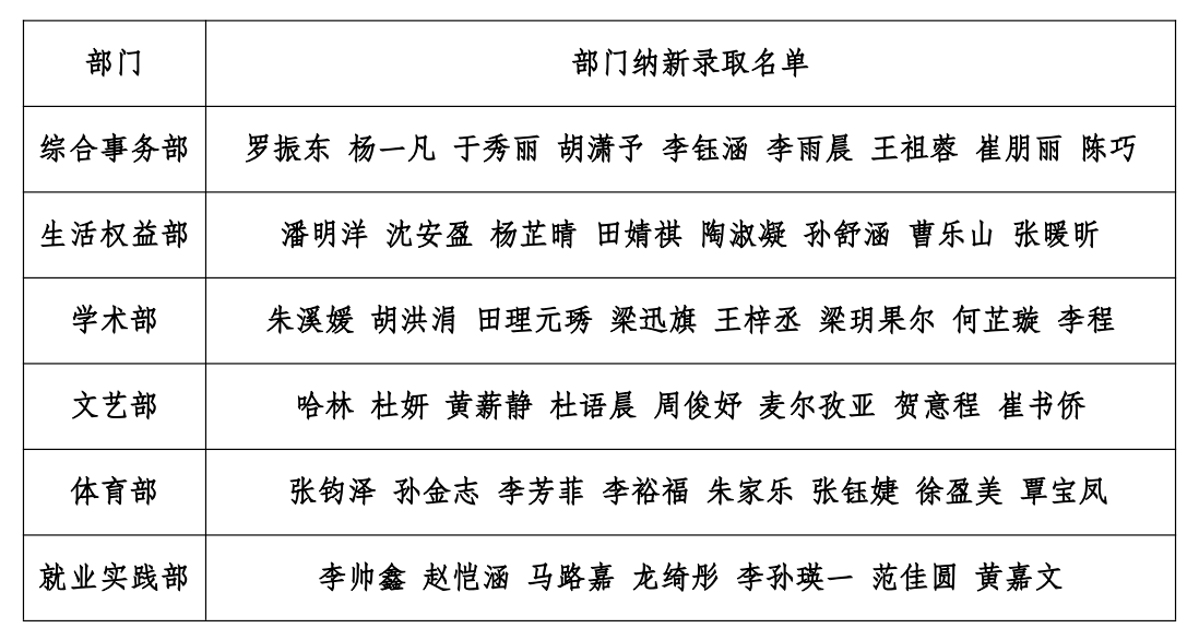注:自公示贴出之日起两个月为本届干事试用期。如有异议,请联系王同学(电话:18561500727)。