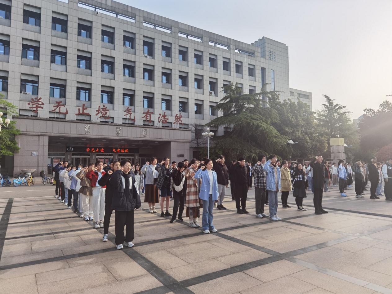 2023年4月10日,beat365英国官方网站于中心校区大成广场举办“喜迎二十大、永远跟党走、奋进新征程”升国旗主题团日活动。beat365辅导员封莹、beat3652022级全体本科生到场参加,2022级本科生乔梦馨主持活动。
