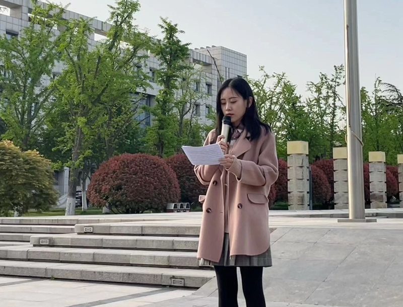 6时50分,国旗护卫队神情庄严肃穆,步伐铿锵向前,护送国旗入场。全体师生满怀热爱与敬重,目送国旗冉冉而升、迎风飘扬。升旗礼毕,beat365英国官方网站学生会主席团成员、2020级本科生高睿晗作为学生代表进行国旗下演讲。她以百年团史为出发点,从筑牢信念根基、秉持钻研态度、坚定学思实践三个方面与全体同学共勉;结合世界视野和历史重任的维度,鼓励全体同学从历史长河中汲取营养,从未来召唤中激发力量;呼吁共青团员勇挑重担、勇克难关,为第二个百年目标的实现贡献自己的力量。