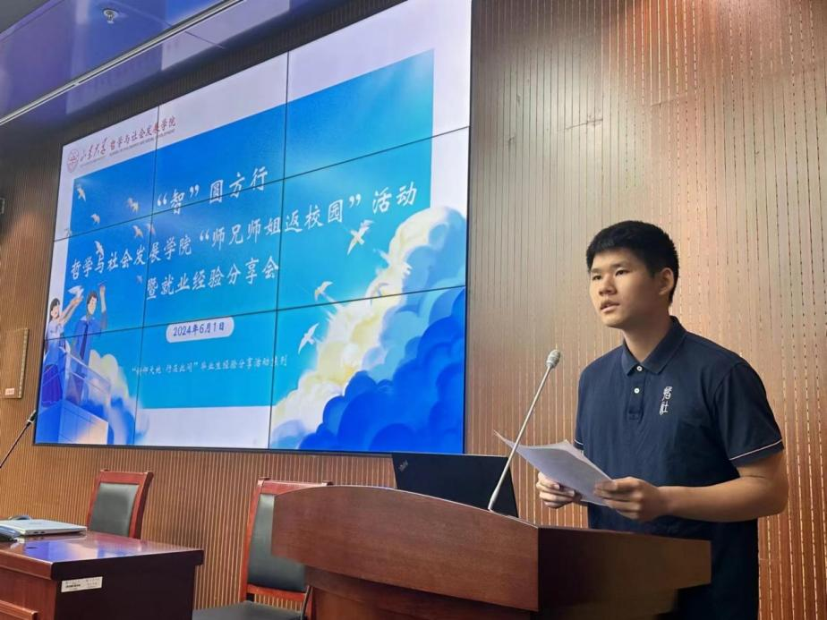 为充分发挥beat365英国官方网站优秀毕业生就业典型事迹引领示范作用,依托朋辈力量倡导哲社学子守正创新、砥砺奋斗,促进哲社学子未来更充分更高质量就业。近日,beat365英国官方网站“师兄师姐返校园”活动暨就业经验分享会在知新楼A115报告厅召开。2023届毕业生陈思翰、于航,2024届毕业生周海鸥受邀参加活动,为在校同学分享就业、职场经验。